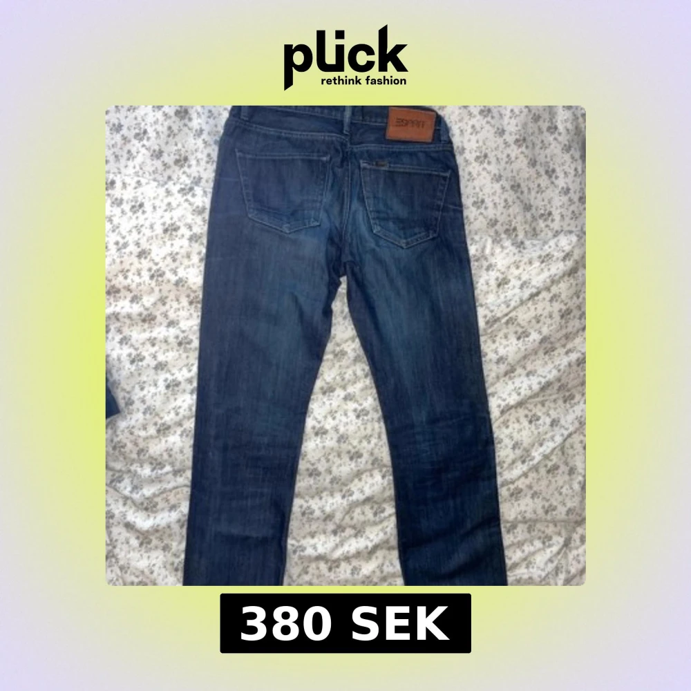 Snygga mörkblå jeans från Esprit med klassisk femficksdesign och läderpatch med logga bak. Jeansen har rak passform och normal midja, tillverkade i slitstarkt denimtyg.