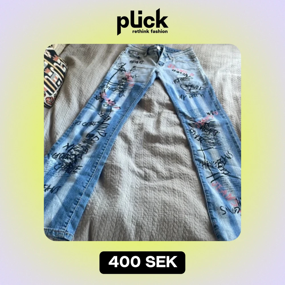 Unika färgglada jeans stl 5 motsvarar 36. Inköpta på Plick i vintras, ej använda sedan dess då de inte passar.