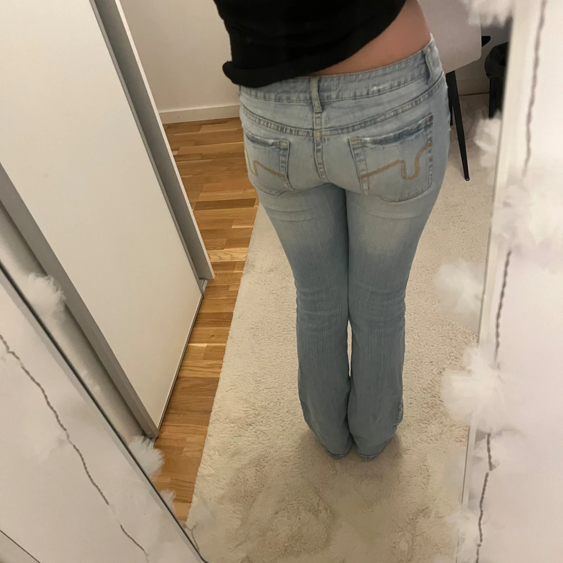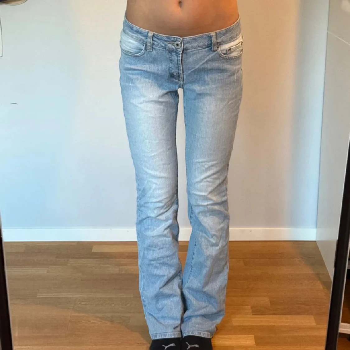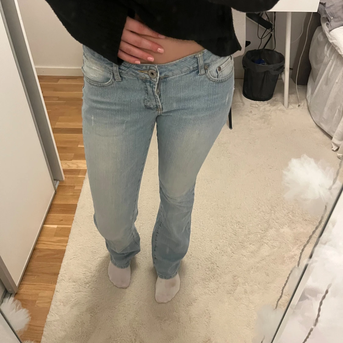 Snygga jeans! Midjemåttet är 76 cm och innerbenslängden 81 cm ungefär