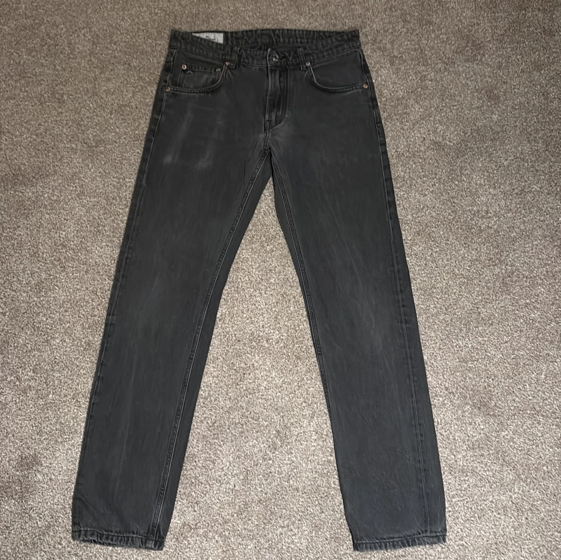 Snygga svarta jeans från J.Lindeberg i klassisk rak modell. Jeansen har fem fickor, bälteshällor och subtilt tvättad finish. Tillverkade i slitstarkt bomullstyg med en stilren look som passar till det mesta. Ny pris 1700kr mitt pris 299kr