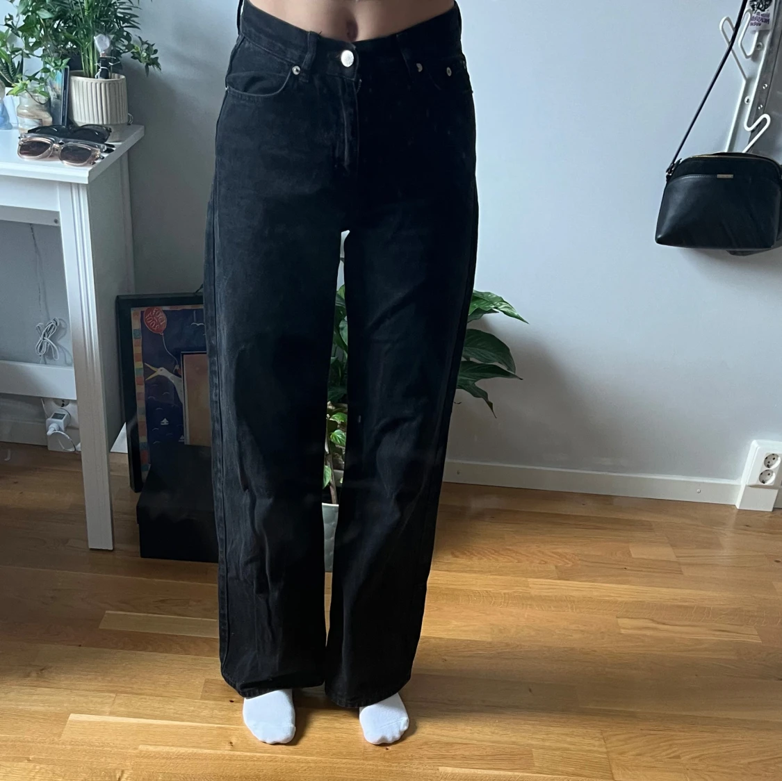 Jeans från Junkyard med medelhög midja. Modellen heter ”wide leg jeans”