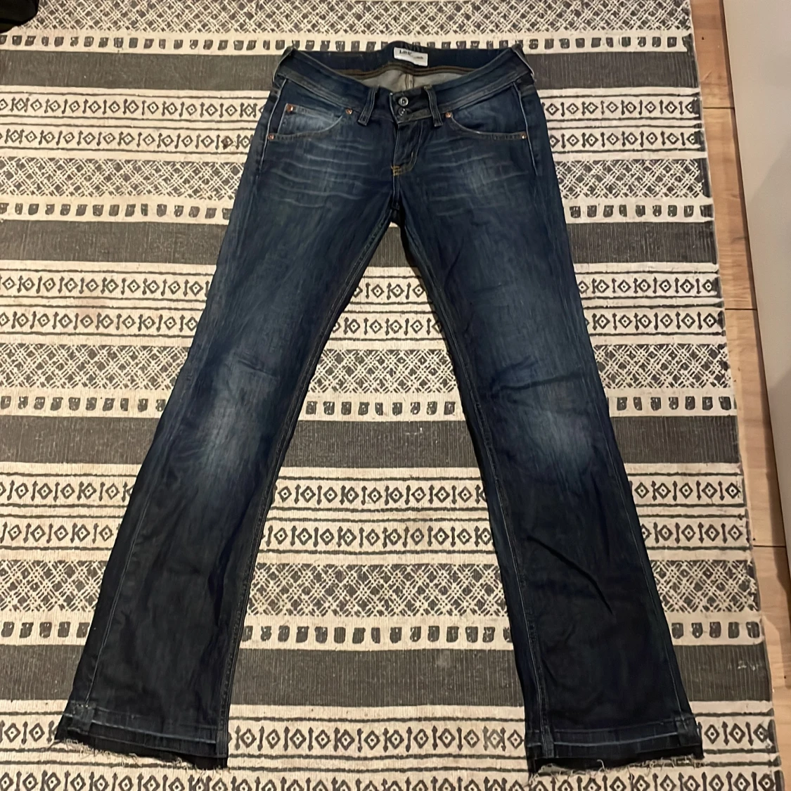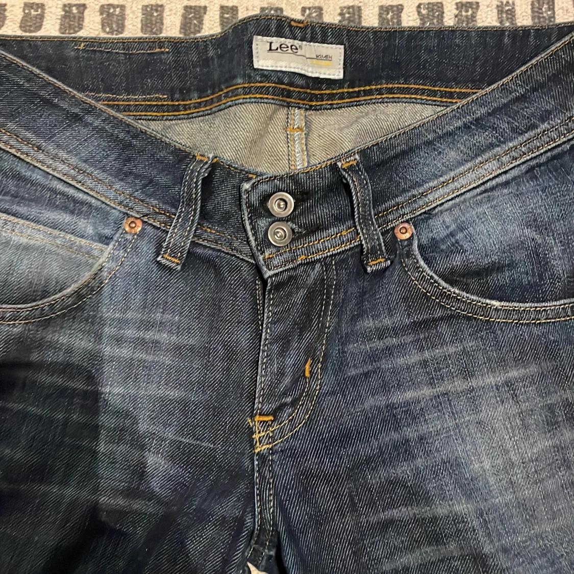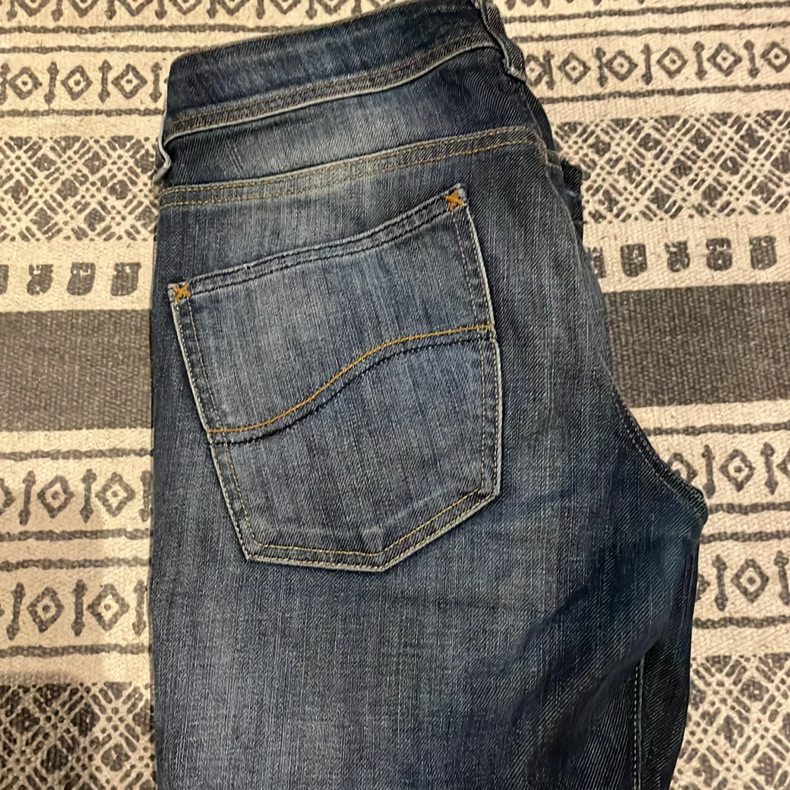 Snygga blå jeans från Lee med klassisk femficksdesign och en bootcut modell. Jeansen har tydliga slitningar och kontrastsömmar, samt dubbla knappar i midjan.