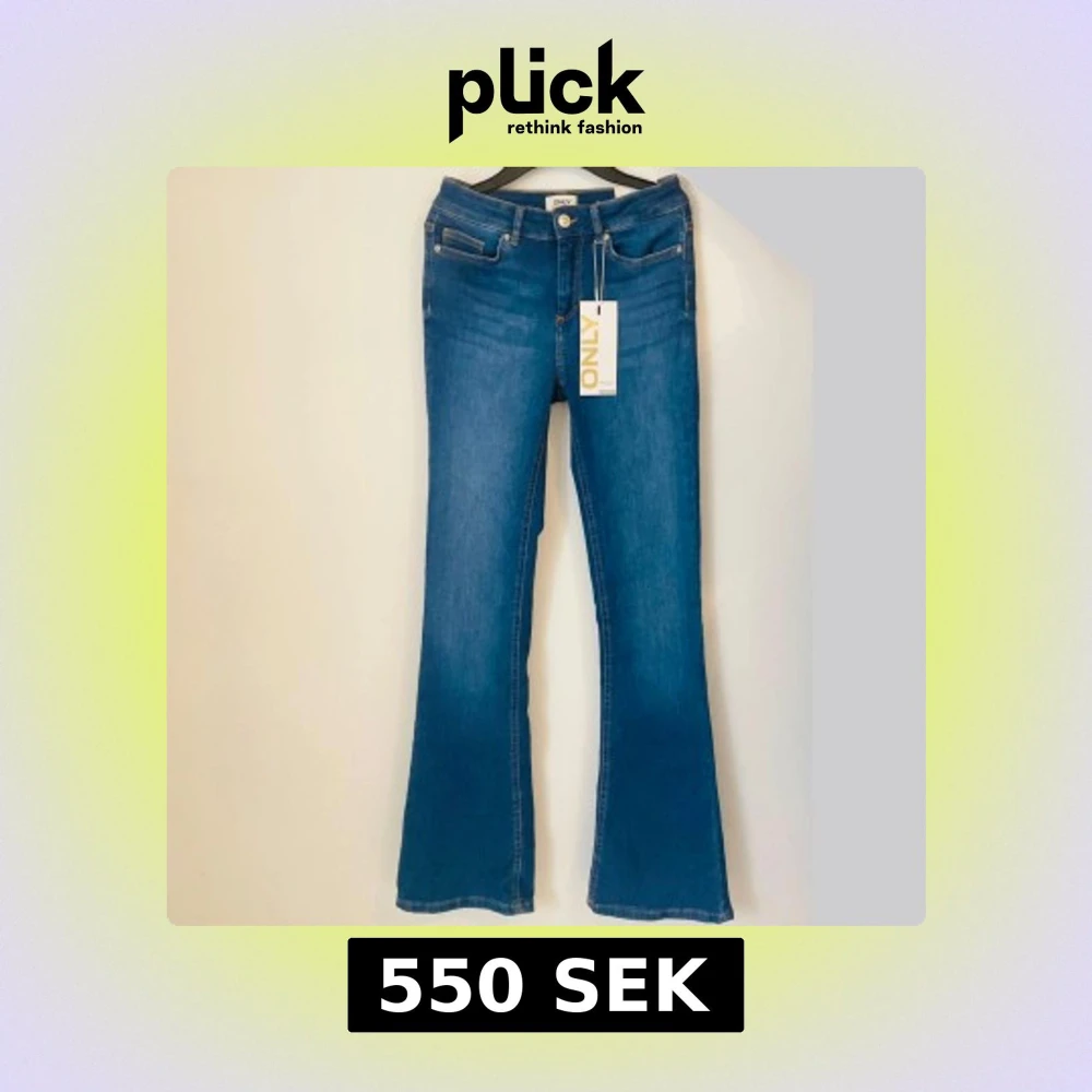 Säljer ett par utsvängda jeans från Only, helt nya med lappen kvar i storlek S/34. Modell: Blush flared mid waist. Köparen betalar frakten!