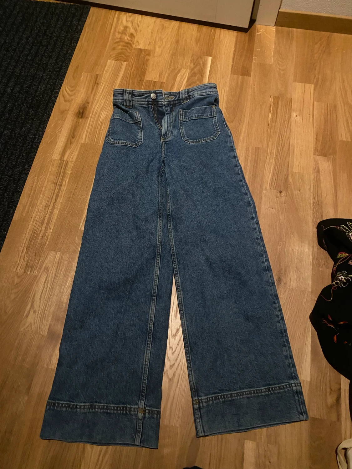 Ljusa jeans med fickor på framsidan, så fina och bekväma.