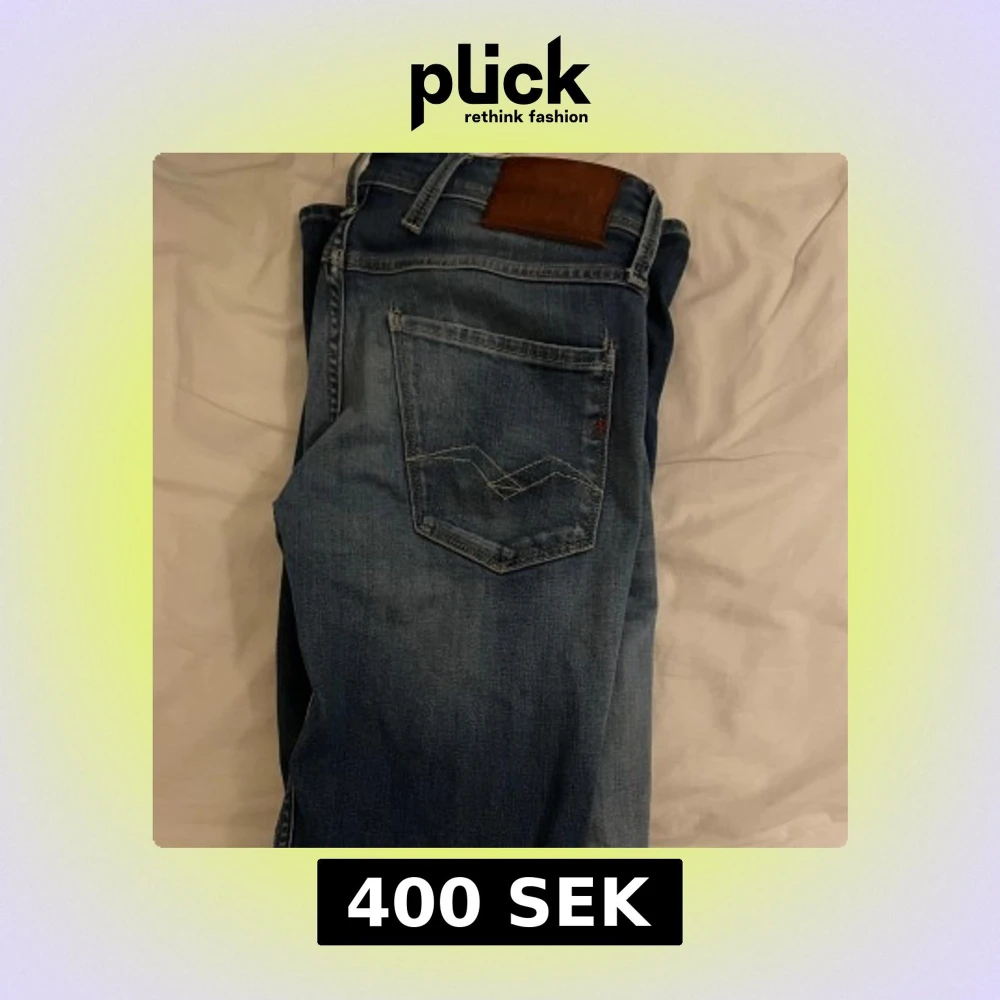 Snygga blå jeans från replay. Ganska använda men väldigt bra skick!!