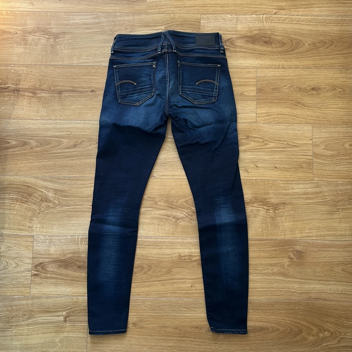 Mörkblåa jeans LYNN mid skinny från G-star raw. Storlek 28/30. Material: 35% bomull, 35% lycocell, 28% polyester och 2% elastan. Sparsamt använda, så nästan i nytt skick!