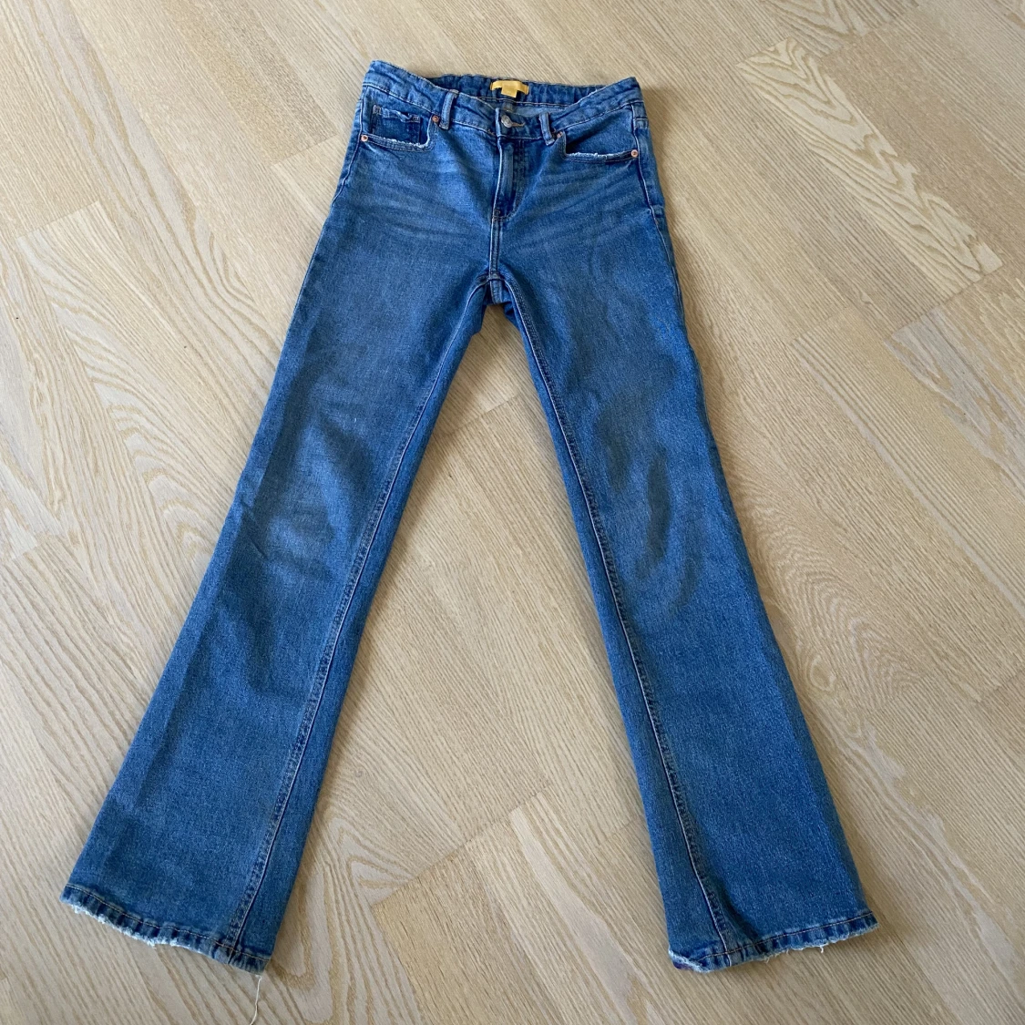 Ett par sjukt snygga jeans från Gina Tricot. Säljer för att jag har ett par liknade byxor. Jag skulle säga att dem är 152-158 i storleken men går att justera i midjan. Säljer för 100kr + 50kr frakt