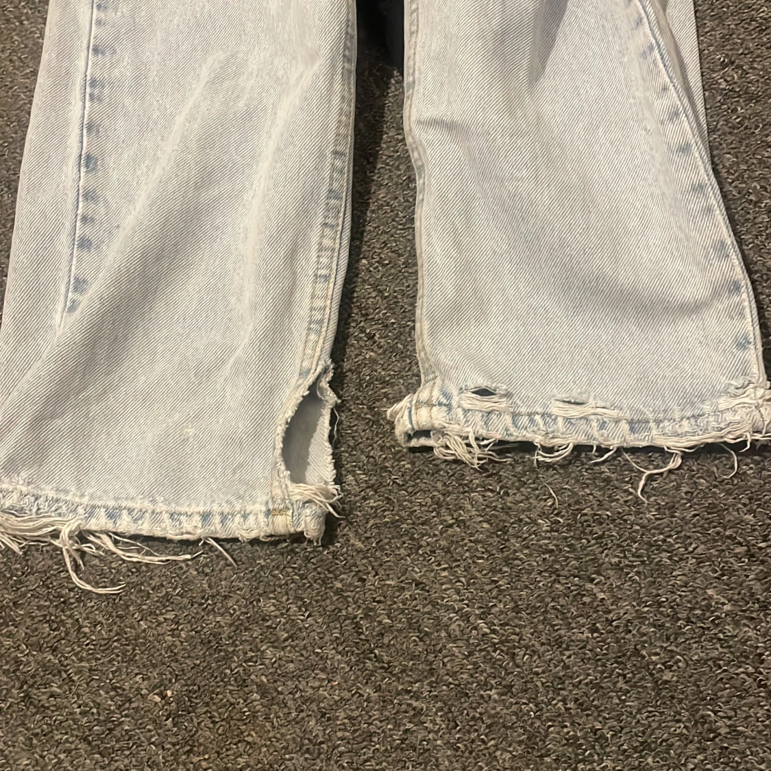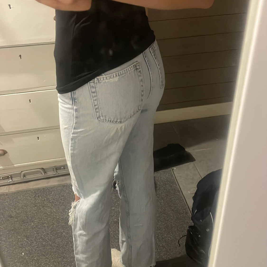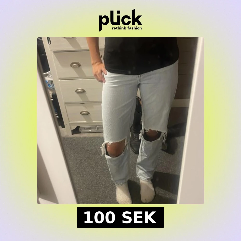 Super snygga jeans med hål i framtill! (Dom är midwaist) Dom är i strl 158, passar mig som är 167, har xs i jeans!👖dom är i bra skick men slitna längst ner.