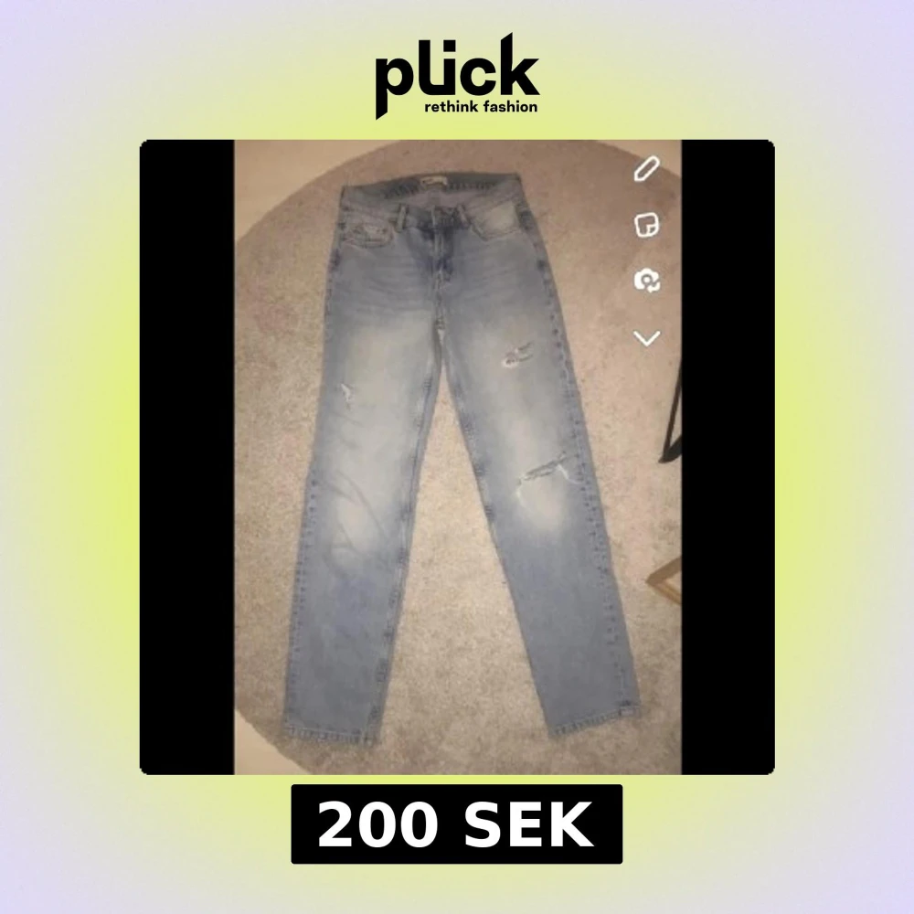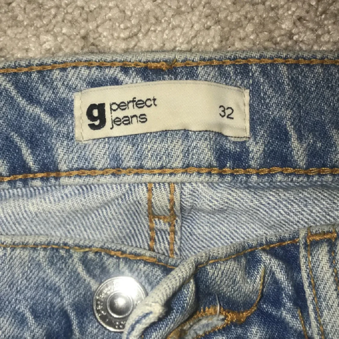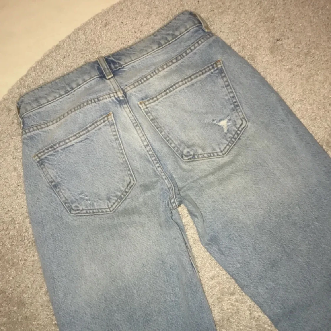 Ljusblå jeans med slitna detaljer och raka ben från Gina tricot. Klassisk femficksmodell med snyggt tvättad look och slitningar på både fram- och baksida. Perfekt för en avslappnad och trendig stil.