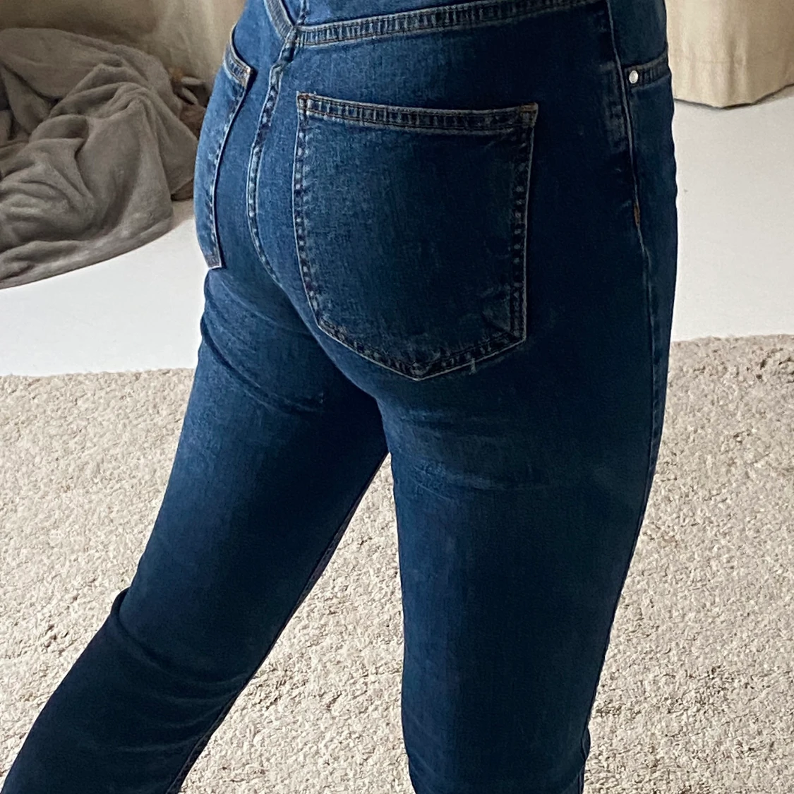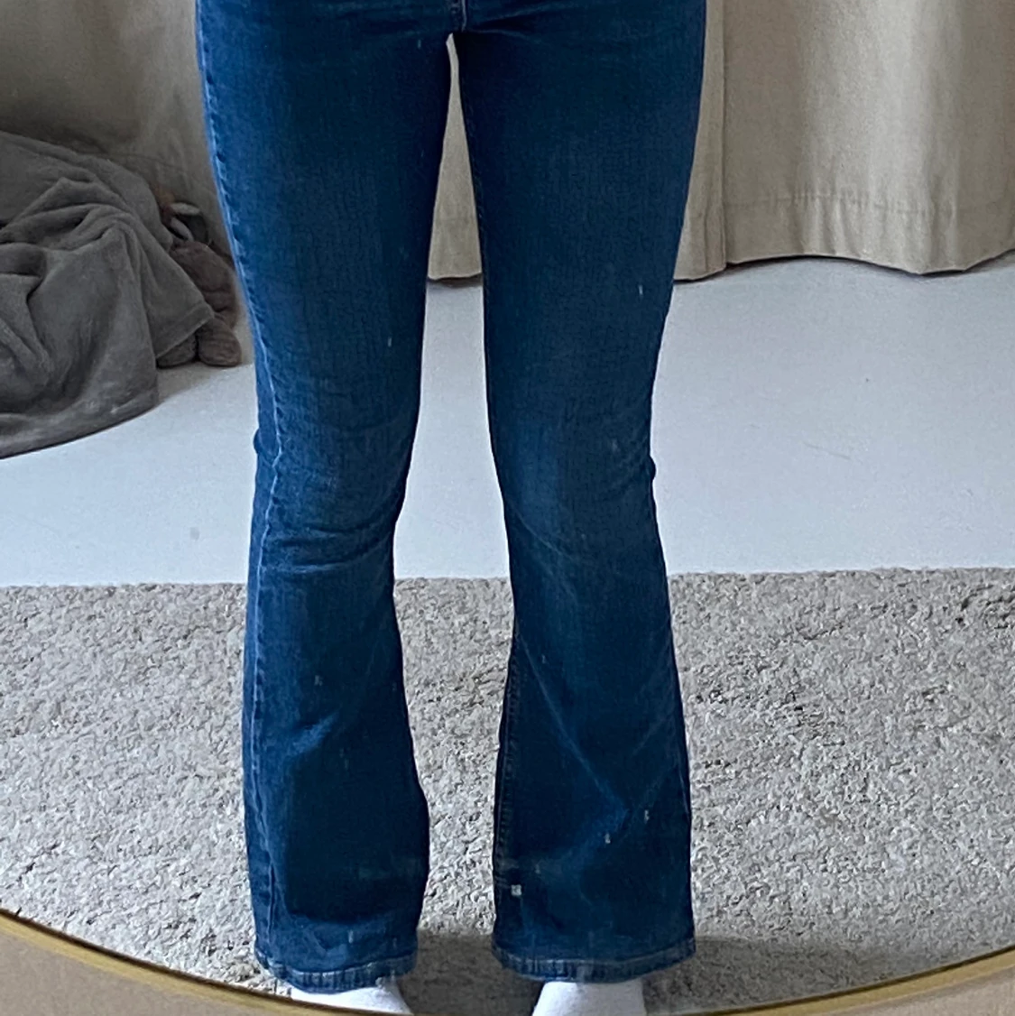 Mörkblåa bootcut jeans från Gina! De är stretchiga och i bra skick!☺️