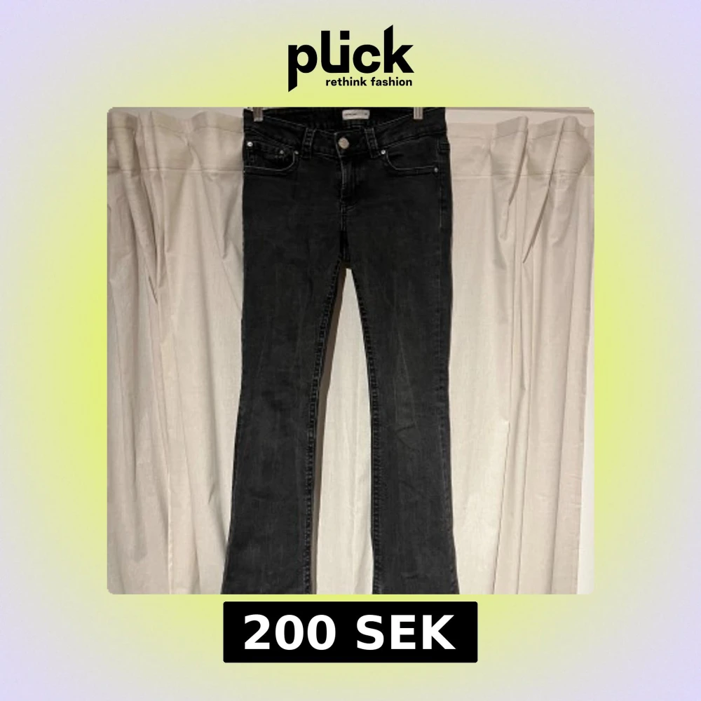 Säljer dessa svarta flare low waist jeansen från Gina tricot i modellen ”y2k low waist jeans”. Fick dem som present i julas och har inte kommit till användning.