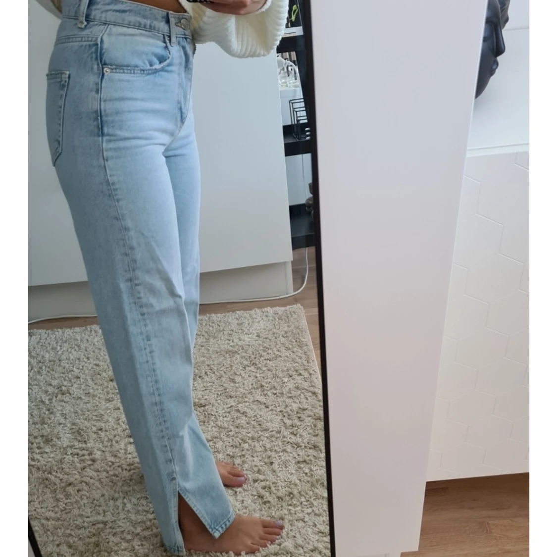 Ett par jeans från Gina Tricot i 90's Petite modellen, i storlek 34. Är 165cm lång för er som undrar. Priset är med inkluderad frakt, klart och ej prutbart!
