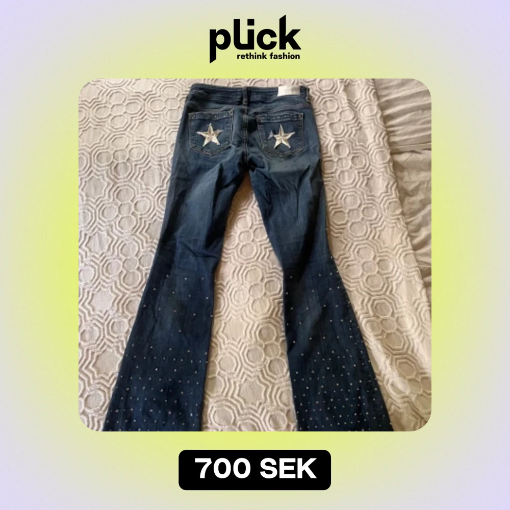 Lågmidjade bootcutjeans med glitter och stjärnor