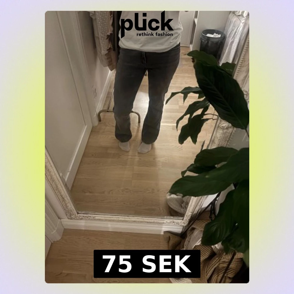 Säljer ett par grå jeans från Gina Tricot i storlek 164. Jeansen har bootcut-modell med lätt utsvängda ben och klassisk femficksdesign. Tillverkade i mjukt denimtyg som sitter skönt och passar perfekt till sneakers eller boots.