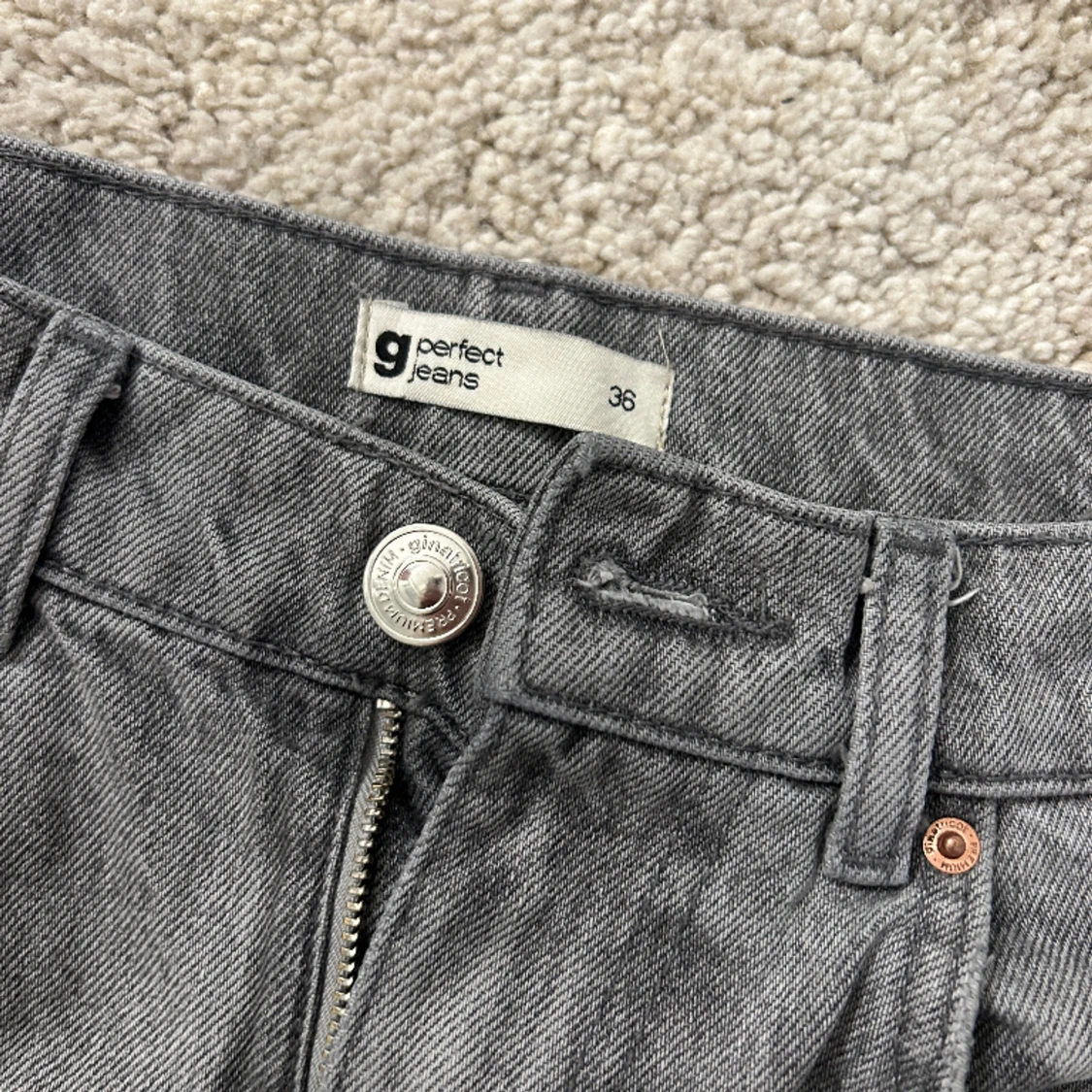 Säljer mina snygga gråa jeans från gina, då dom är lite för stora. Fint skick och inga defekter 💕💕