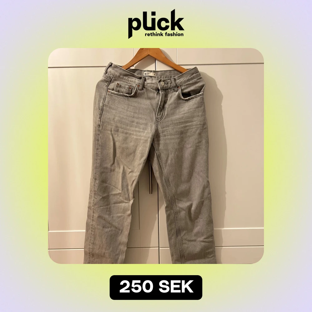 Säljer ett par mjuka grå jeans från gina tricot i bra skick. De har en klassisk femficksdesign med knapp och dragkedja framtill. Jeansen är raka i modellen och passar perfekt för både vardag och fest. De är extremt mjukt i material, skönaste jeansen jag har någonsin haft!! Använt några gånger för flera år sedan.