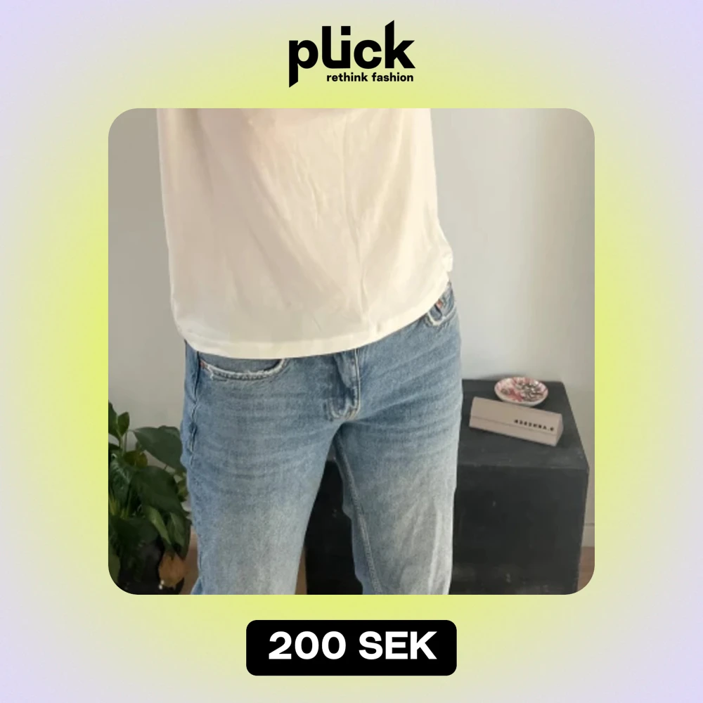 Jättefina jeans från Gina Tricot. Jeansen är lågmidjade och i en fin ljusblå färg. De är långa på mig som är ca 160 cm och är i storlek 32💙 Hör av dig vid frågor!