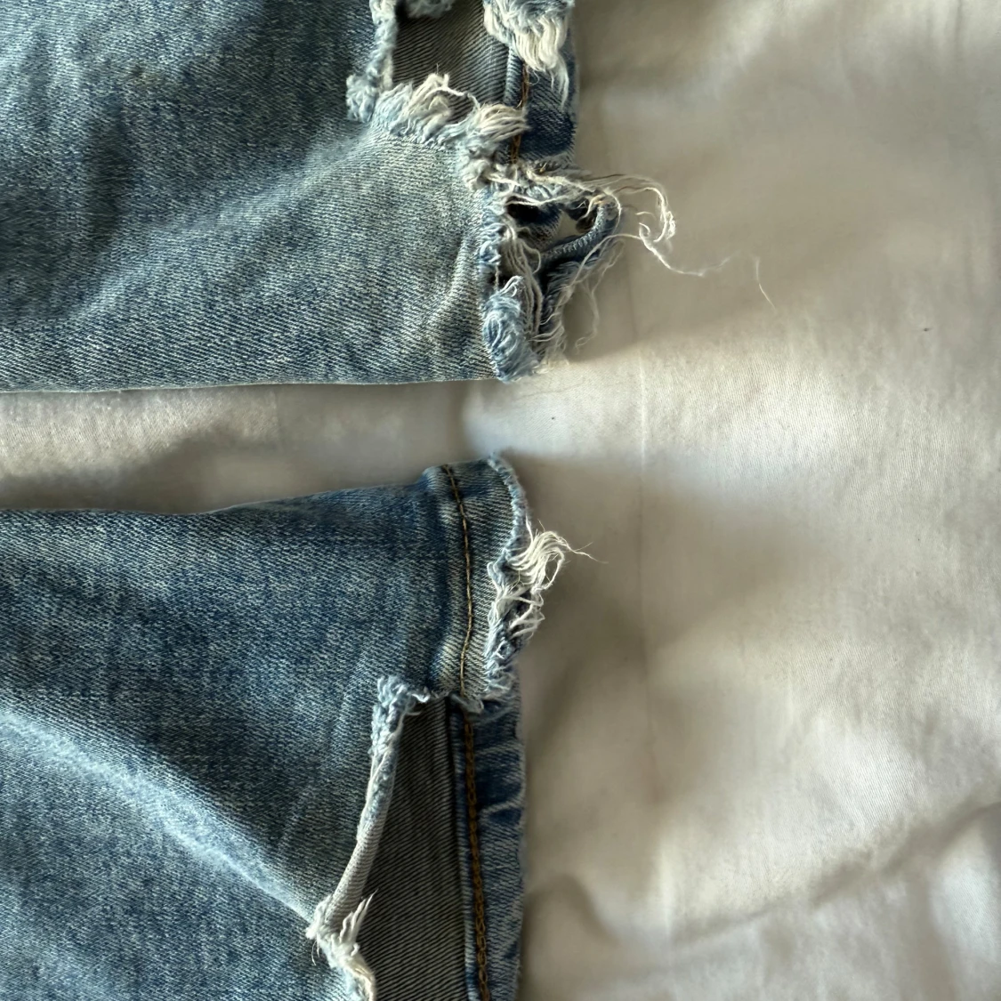 Säljer dessa jeans från Gina. Dom har låg midja (inte super låg). Dom har en slitning på båda benen då jag har gått sönder dom därför priset, resten av byxorna är dock i bra skick