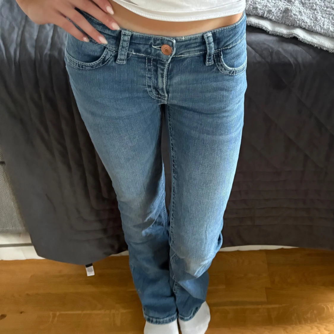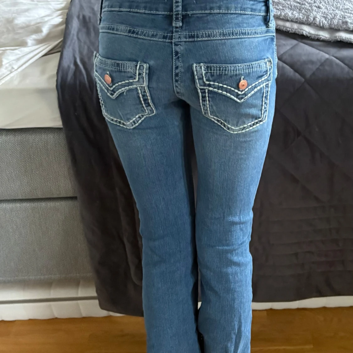 Snygga blå jeans med bootcut passform och låg midja. Storlek 164 men passar xs/s helt nya utan prislapp