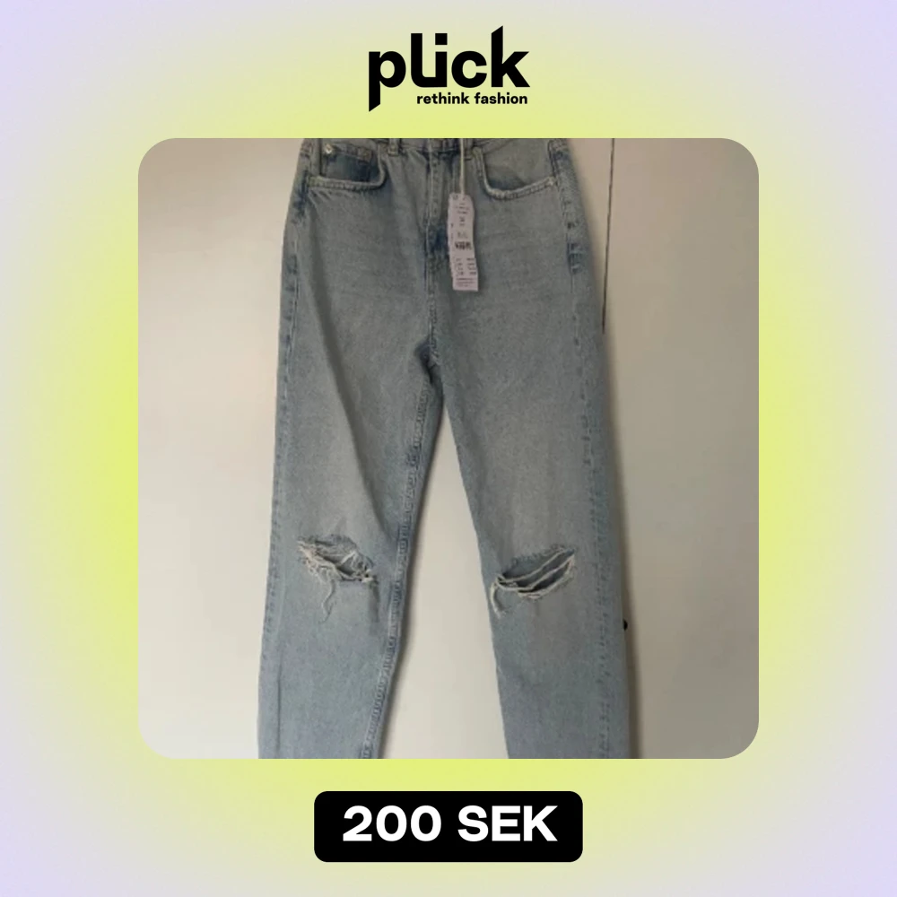 Ljus blå jeans med hål från gina!!🩵 säljer pga att dem är förstora och inte kommer till användning!! Oanvända och lappen finns kvar! Nypris 599kr🩵