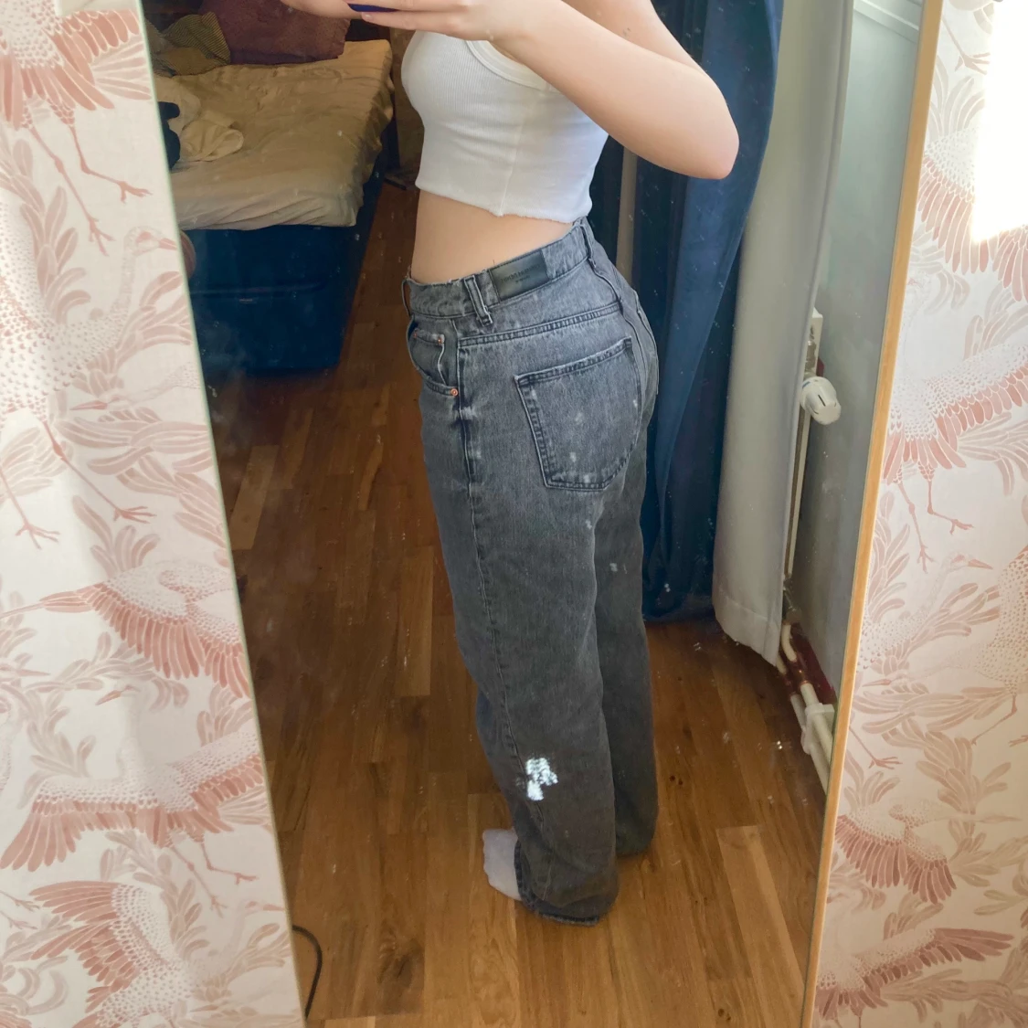 jättefina jeans i modellen 90s high waist från gina tricot, men som ni ser sitter de inte jättehögt upp. tog en storlek större i dessa så de kunde sitta lite lägre ner och mer baggy.
