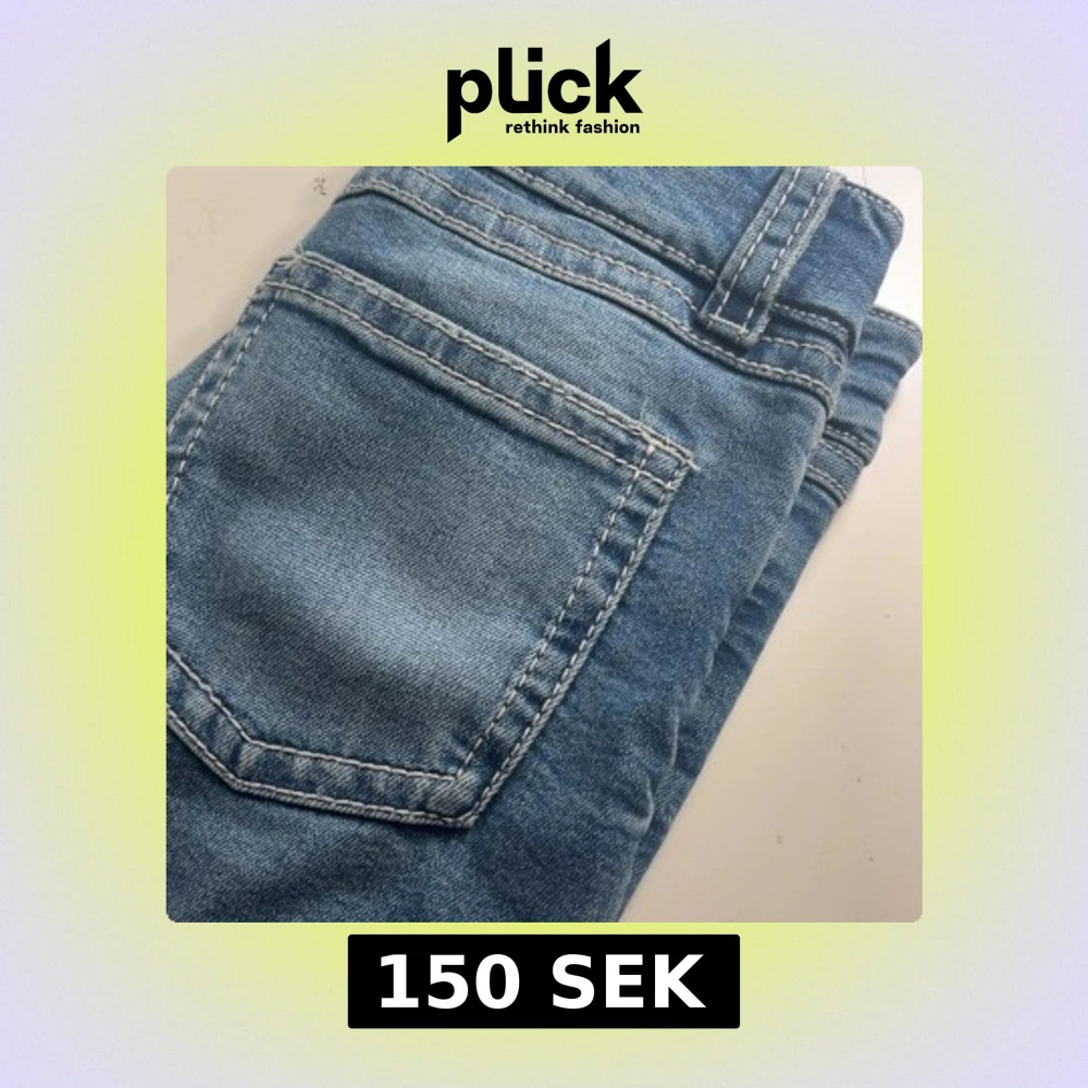 Snygga blå jeans från Ginatricot i storlek 158. Klassisk femficksmodell med vita kontrastsömmar och dubbla knappar i midjan. Jeansen har bootcut-ben och är tillverkade i mjukt denimtyg som sitter skönt hela dagen.