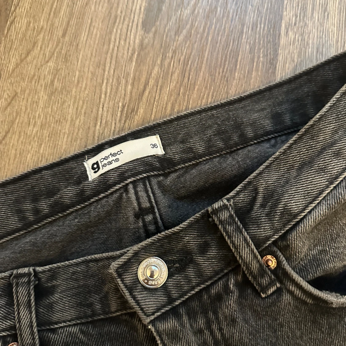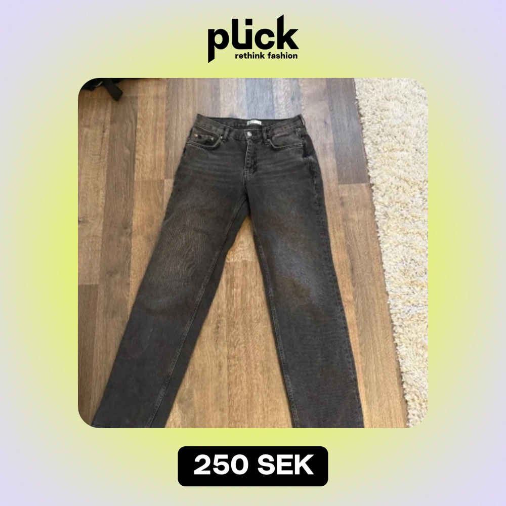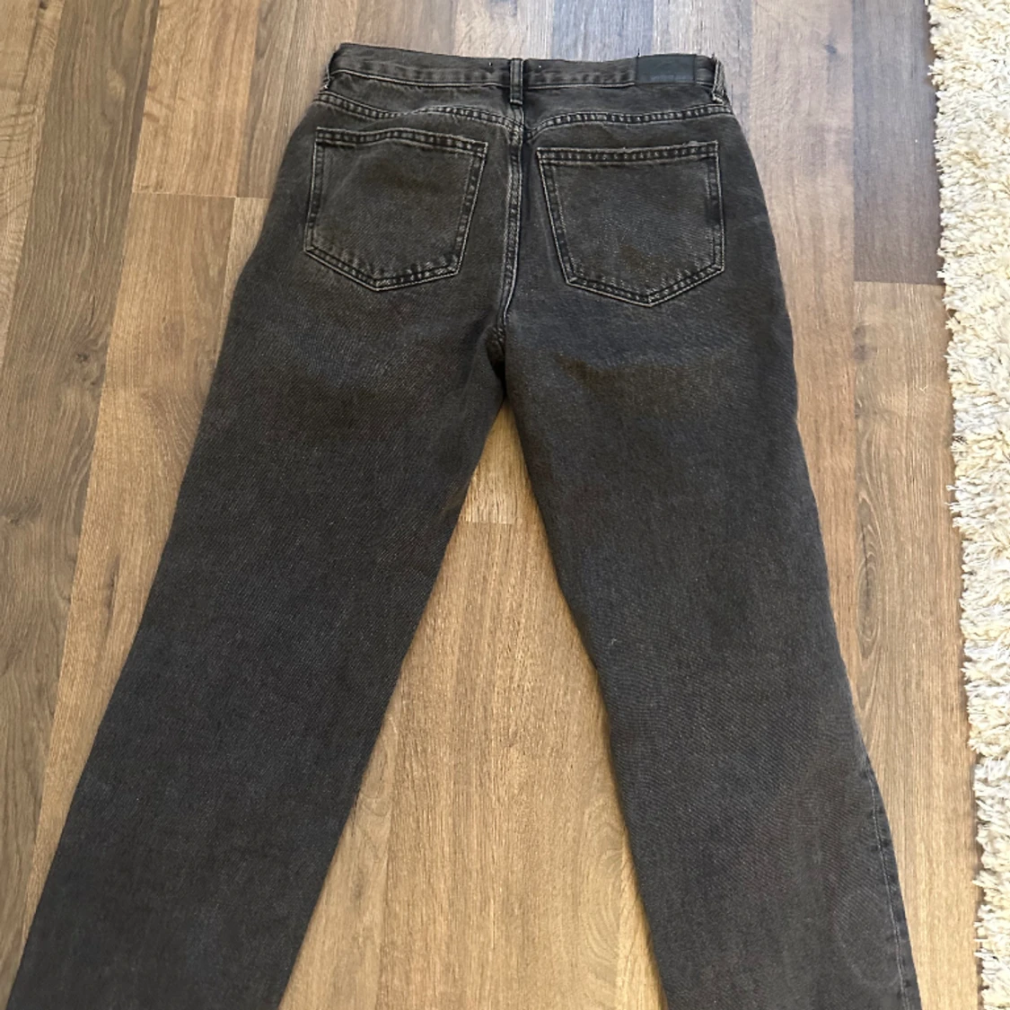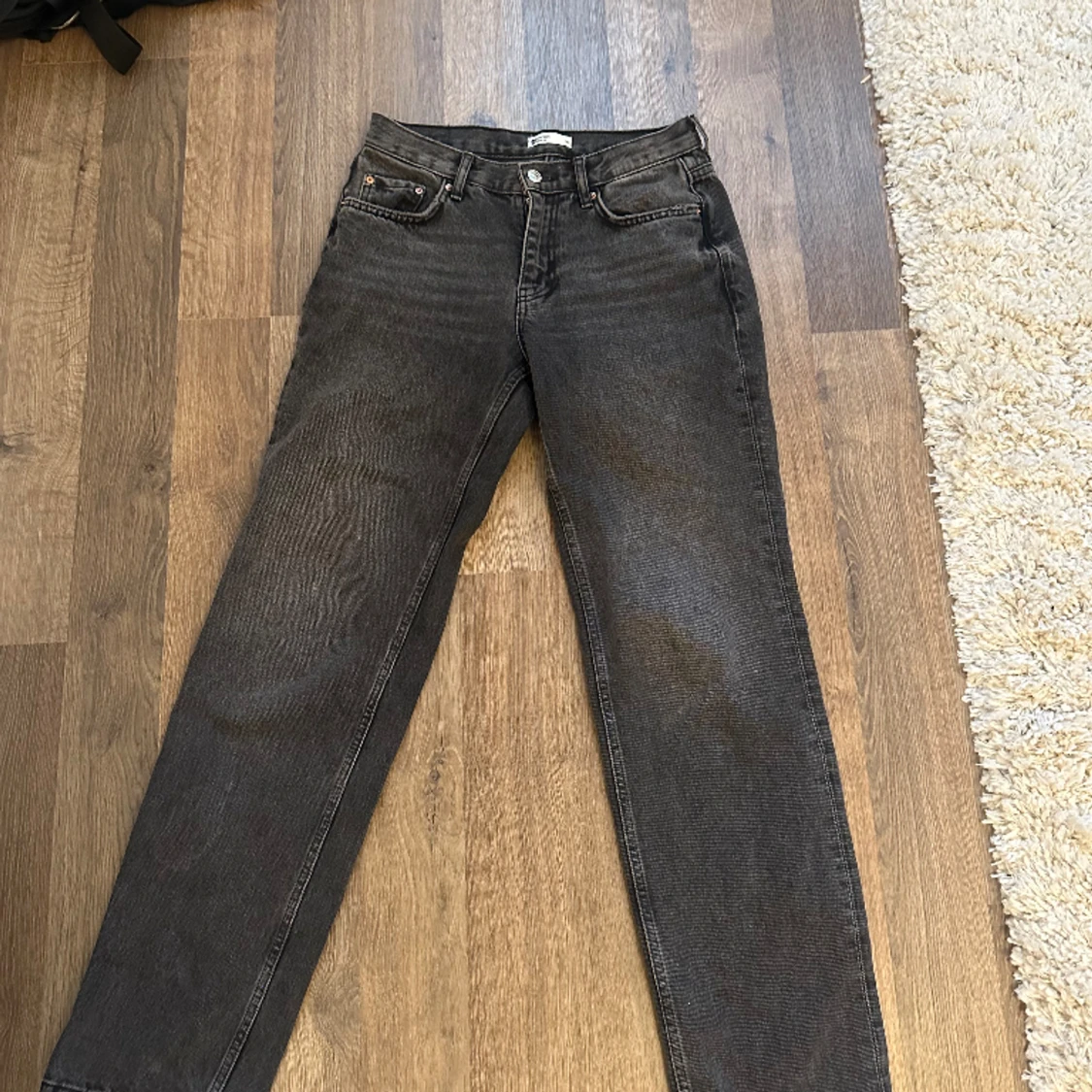 Jeans med låg midja. De är svartgrå med rak passform. Använda men inget som syns. Säljes pågrund av att dem är på gränsen för korta på mig som är 175 cm:) Nypris 499:-