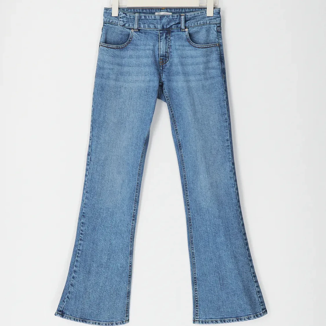 Jeansen heter ”Y2k bootcut jeans” och kommer från gina tricot. Jeansen är helt slutsålda på deras hemsida. Har använt jeansen ett fåtal gånger, finns även inga defekter på byxorna!
