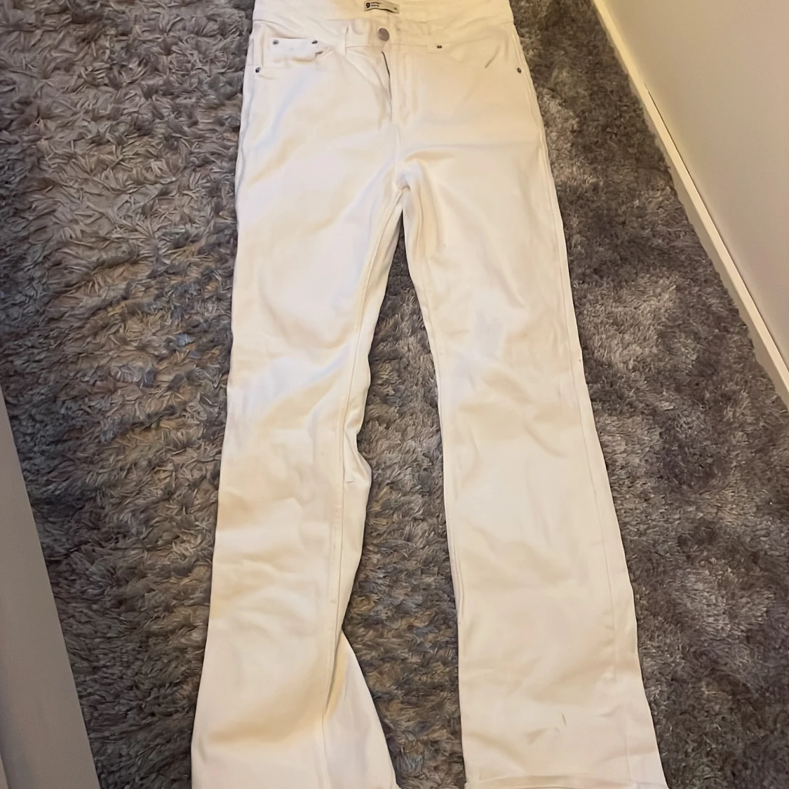 Säljer dessa vita jeans ifrån gina med medelhög midja och i storlek 36,bootcut