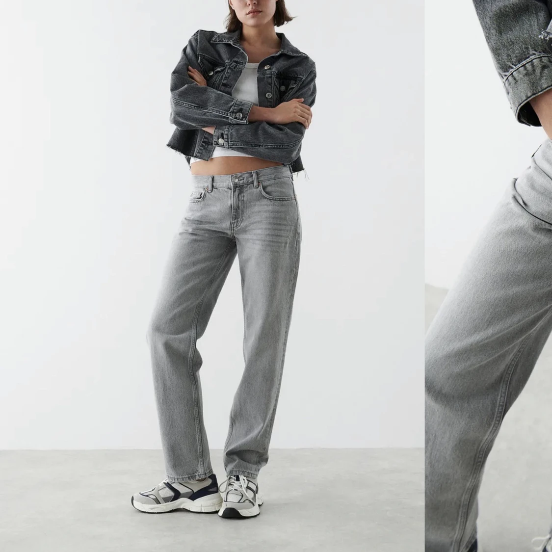 Säljer dessa grå low waist jeans från GinaTricot. Typ slut sålda över allt. Knappt använda då de är förstora för mig. Storlek 38, säljer för 400kr +frakt