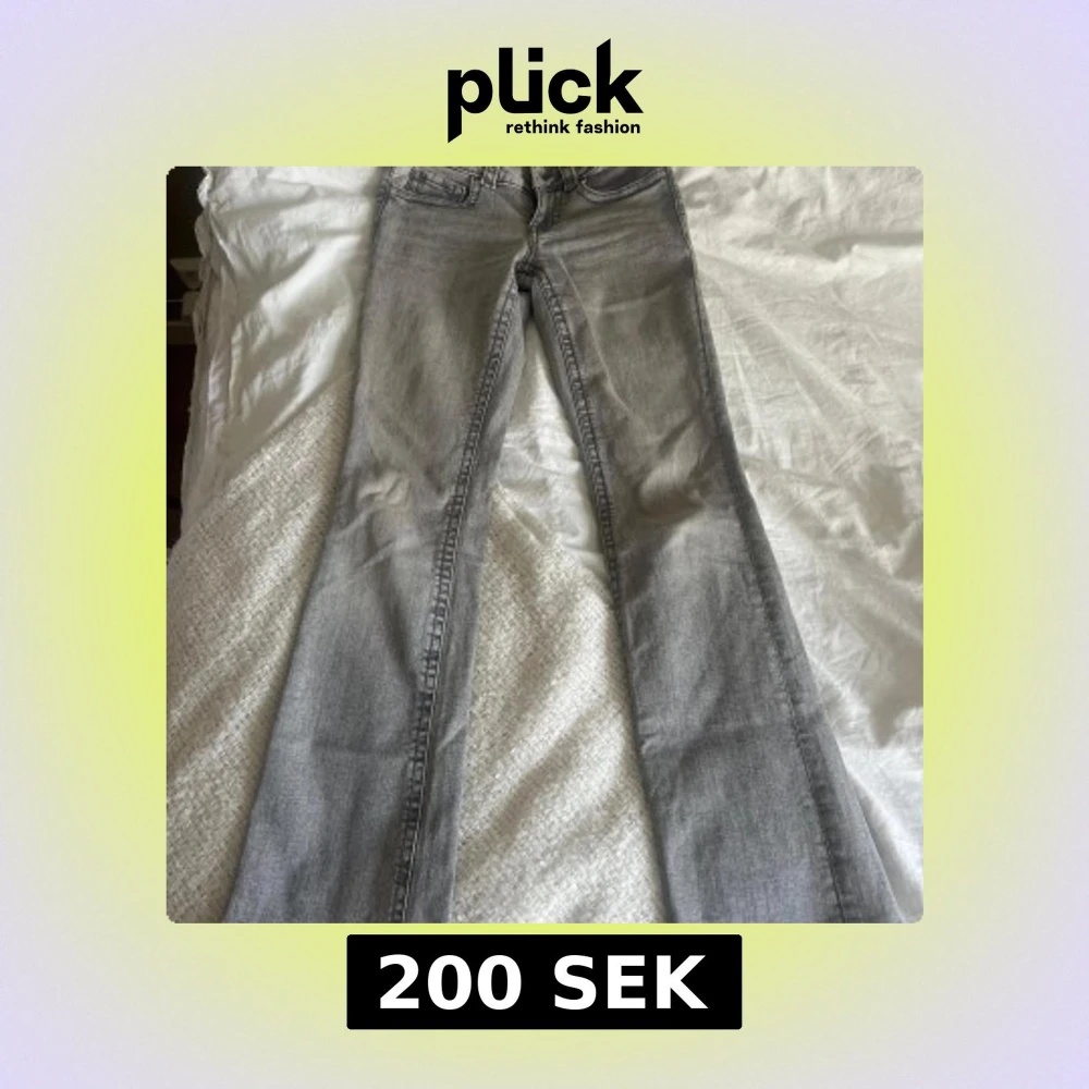 Snygga grå jeans med bootcut-modell och coola fickdetaljer bak. Jeansen har låg midja och är tillverkade i mjukt denimtyg. Perfekta för dig som gillar en avslappnad men ändå trendig look.