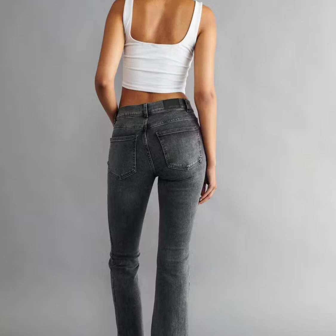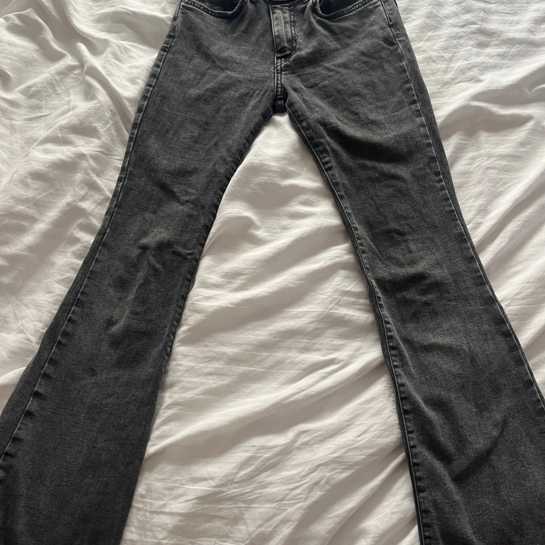 jag säljer mina mörkgråa bootcut jeans från Gina tricot då dem inte kommer till användning längre.💕