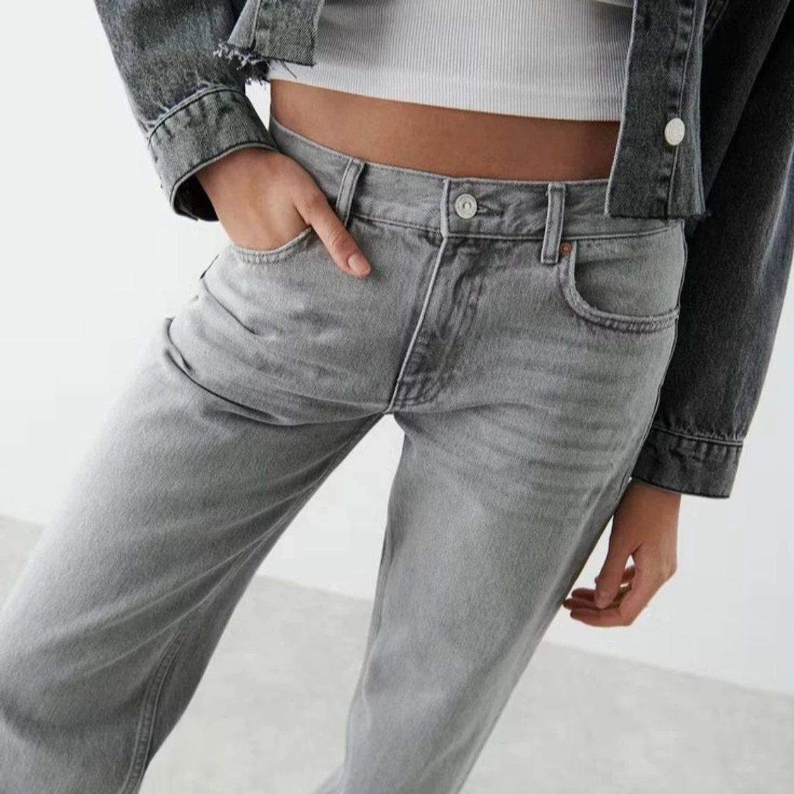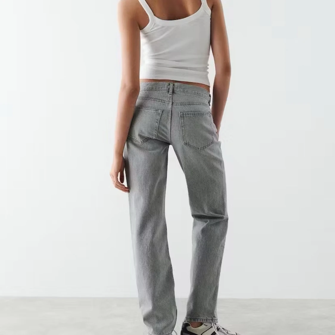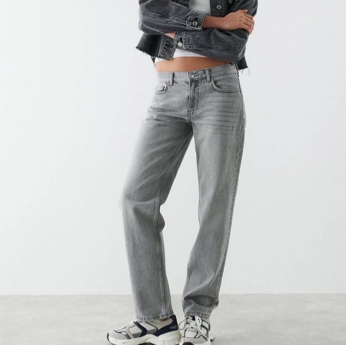 Säljer ett par grå jeans från Gina i modellen low straight jeans. Jeansen har mid/låg midja och rak passform. Jeansen är använda men fortfarande i mycket bra skick. ( jag har klippt ett hål på insidan av midjan (sista bilden) för att kunna spänna åt med ett snöre, men inget som syns eller märks från utsidan).