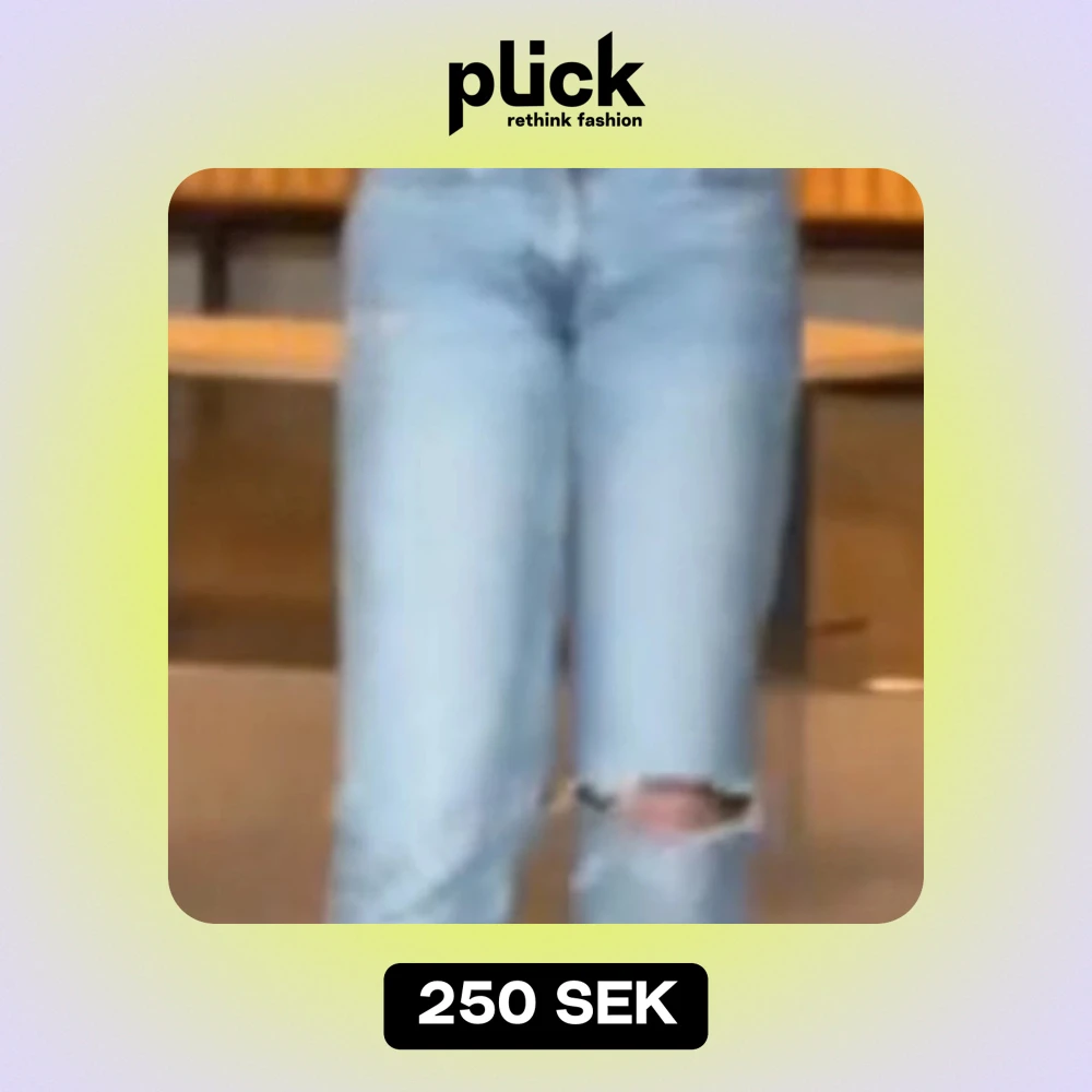 Säljer ett par superfina ljusa low waist jeans från Gina tricot med slitningar på knäna. De ser högre ut i midjan än vad de är men de är lägre på. De har en avslappnad och trendig look, perfekt för vardagsbruk. Jeansen är i bra skick och har en straight passform som funkar till det mesta. Perfekta för en casual stil!