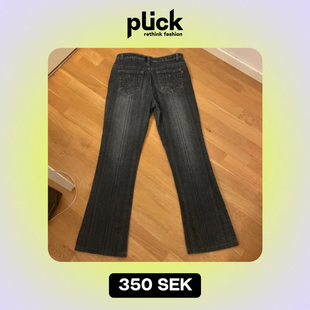 ett par väldigt snygga jeans med broderade blåa blommor och hjärtan på bakfickorna. Perfekt skick förutom att några stenar har ramlat av på bakfickorna. Pris går att diskutera