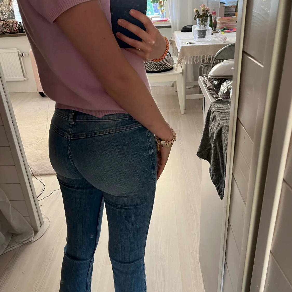 Så fina jeans 💙 är i storlek 152 men passar mig med xxs/xs. Är helt oanvända med prislappen kvar!