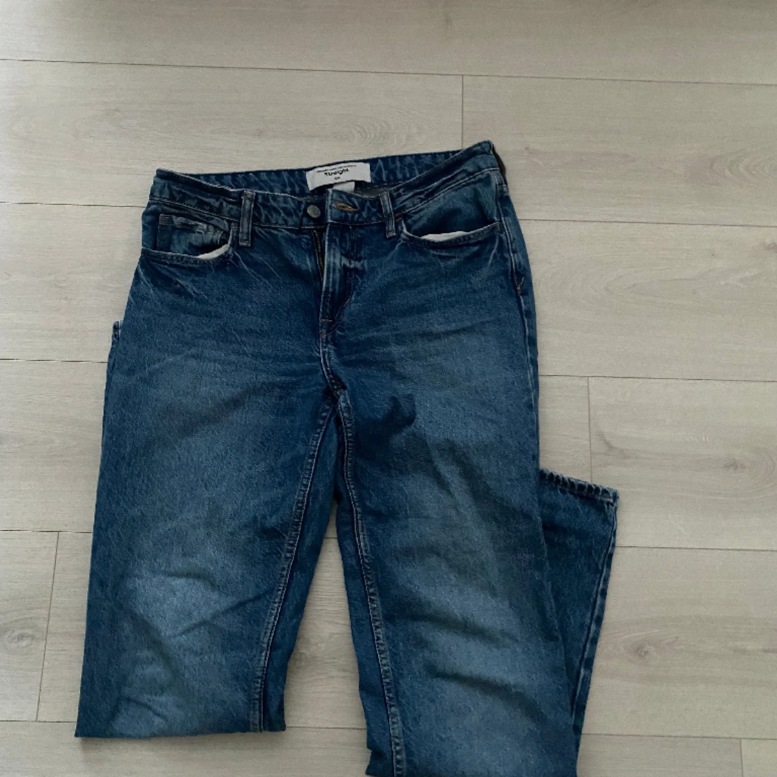 Lågmidjade jeans från H&M. Dom är straight i modellen och har inga skador. Kom privat för mer bilder!!