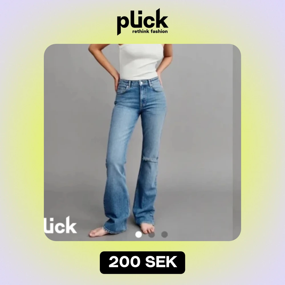 Ett par low waist och lite bootcut jeans från hm. Storlek 32! Jag har 36 normalt och de är för små. Köpte på plick för 350kr. !!(Ägaren innan har sytt de till lowwaist)!! (INTE MIN BILD)