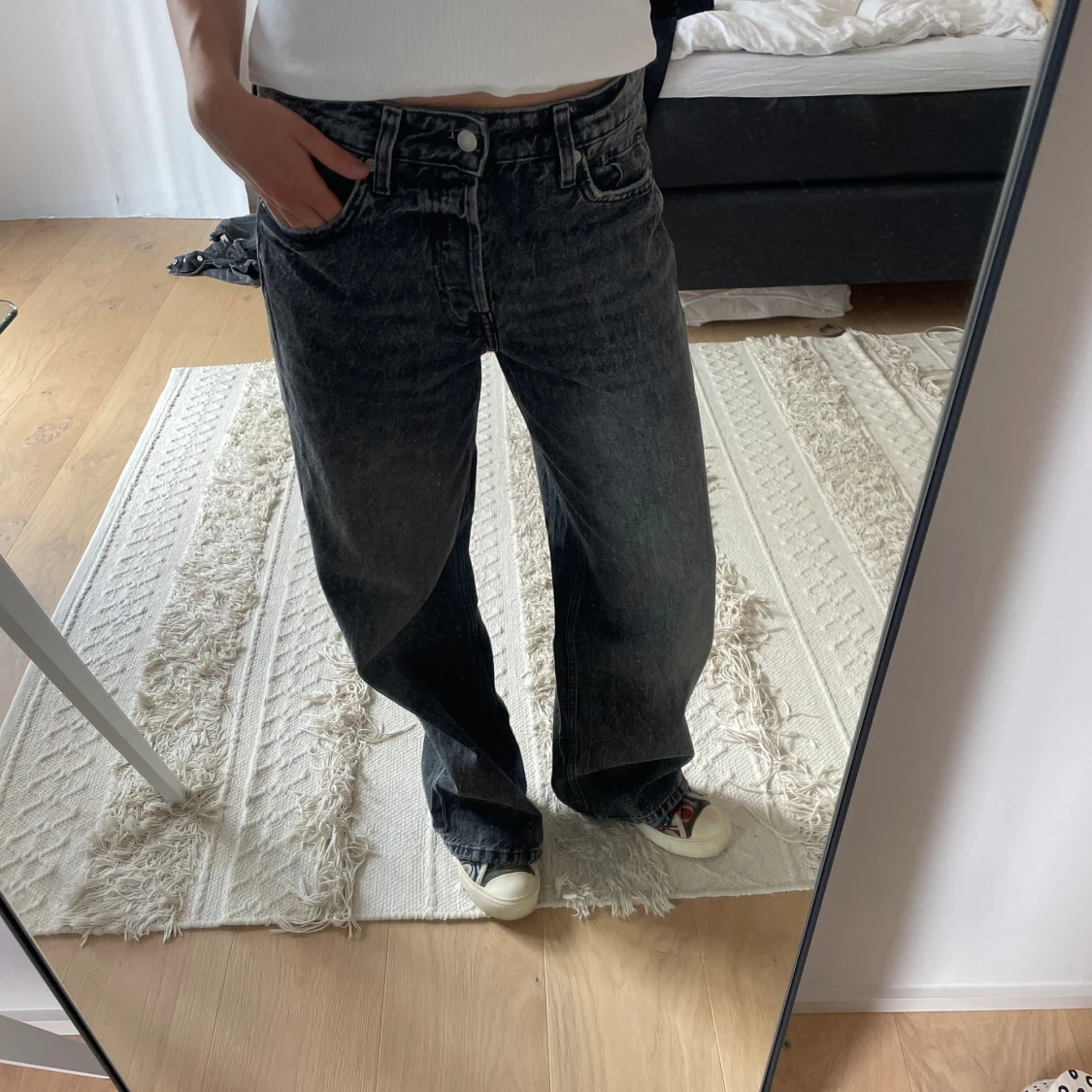 Så sjukt najs low waist jeans från hm i storlek 36, aldrig använda.