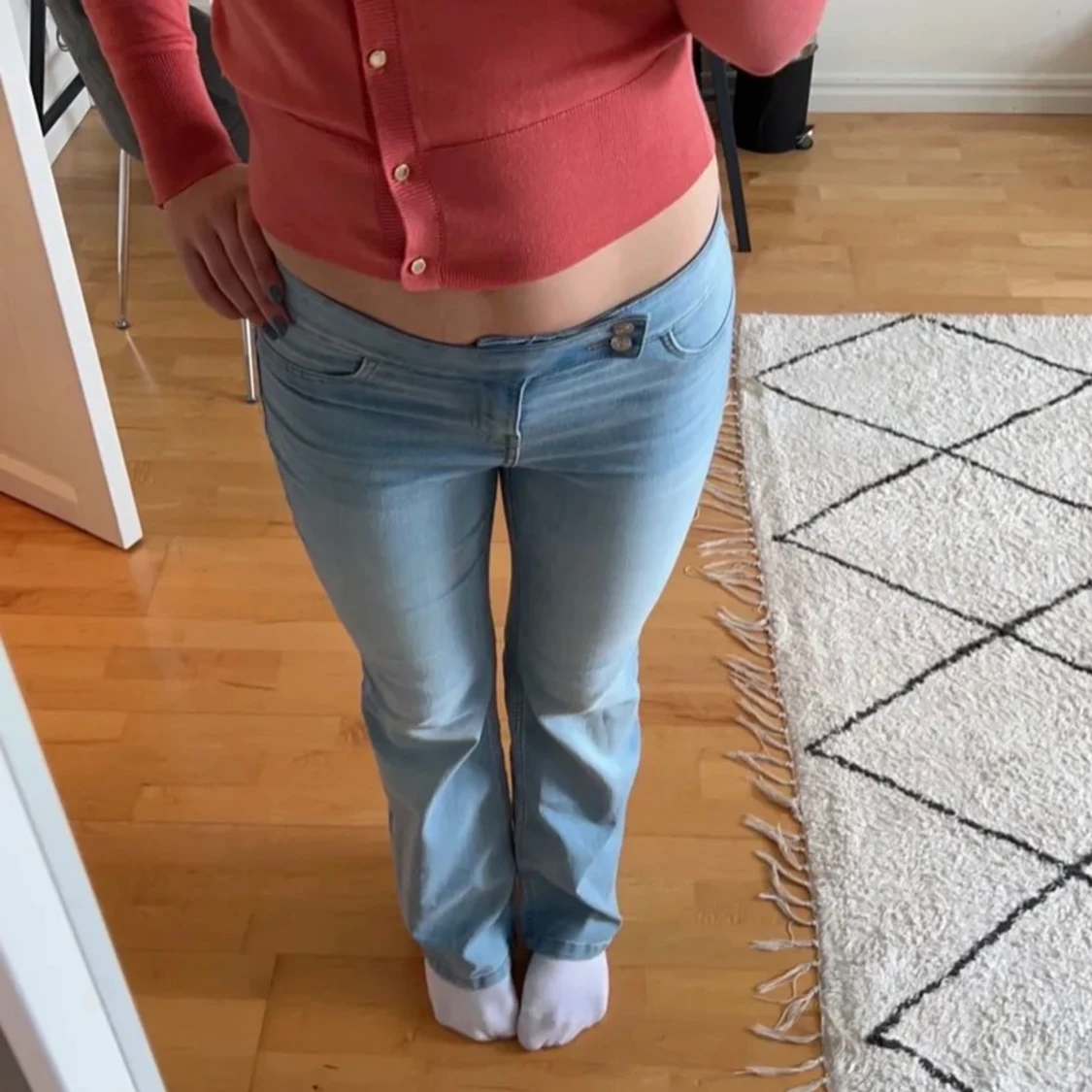 Säljer dessa superfina lågmidjade/flare jeans som endast är använda 4 ggr. De är i en större storlek men sitter bra på mig som har 34/36 i jeans. Kontakta mig för fler bilder! 💗 250kr + frakt. Kan även mötas i Stockholmsområdet. (Lånad bild)