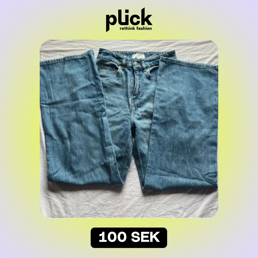 Säljer ett par klassiska blå jeans med hög midja. De har en straight passform och är i bra skick🌸Innebenslängd-74cm Midjemått- 34 x 2 (68cm) Säljer de då de är lite korta på mig (är 173cm)