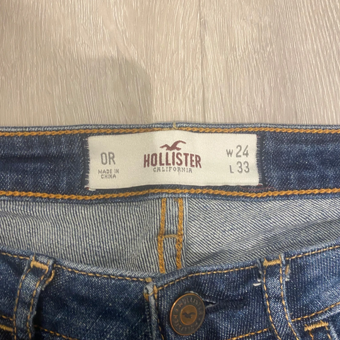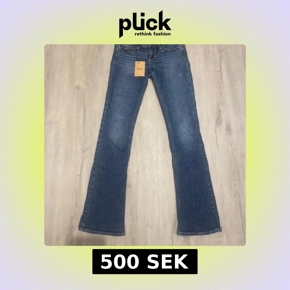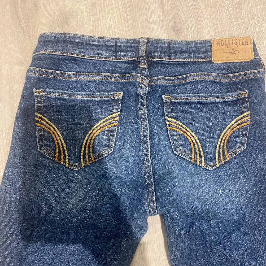 Snygga blå bootcut low waist jeans från hollister, köpte från Sellpy men är lite små, storlek 24 / 33, lågmidjade och utsvängda