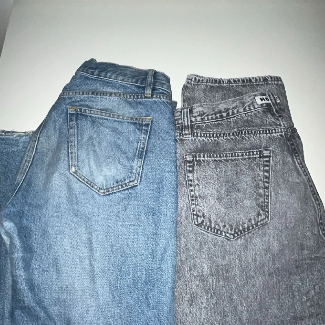 Två par hope jeans i storlek 28 Dem gråa har ett litet hål i höger fickan, samt att dem blåa har fått lite stryk nere vid bena. 750kr per byxa, pris kan diskuteras vid snabb affär!