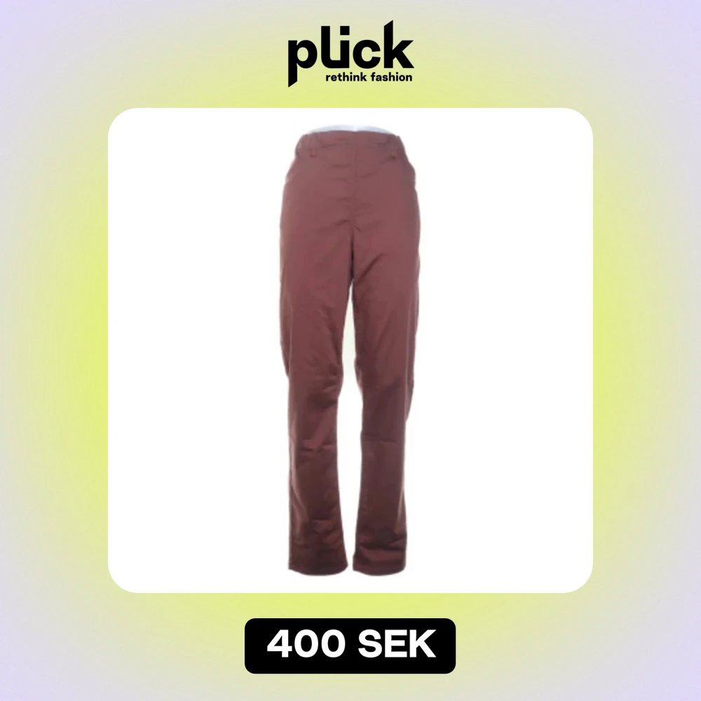 Säljer ett par snygga bruna byxor från Laurie i storlek EUR 42. De är tillverkade av 63% ekologisk bomull, 33% polyester och 4% elastan, vilket gör dem både bekväma och stretchiga. Perfekta för en stilren look!