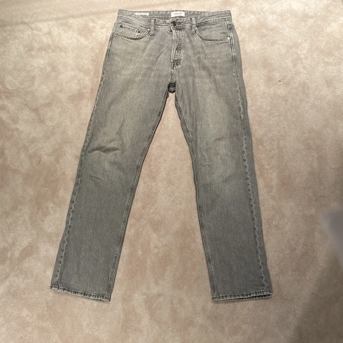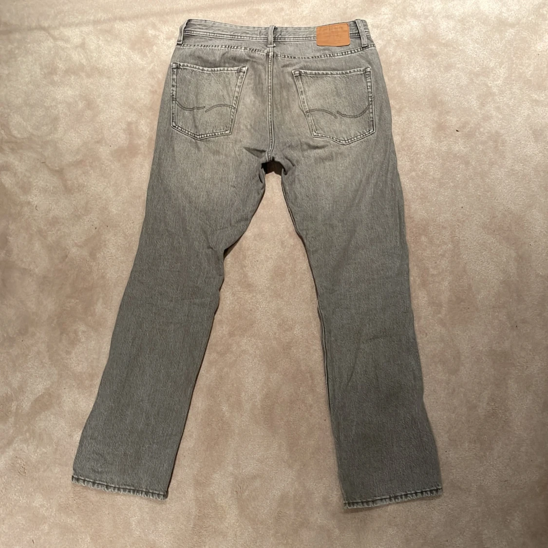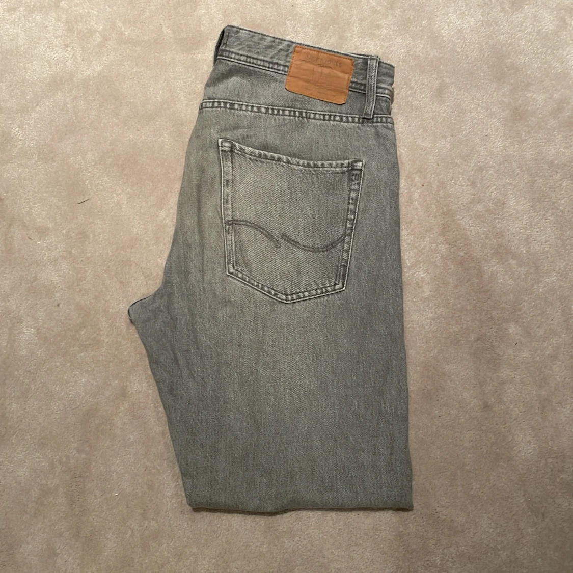 Gråa jeans ifrån Jack and Jones i färgen grå, storleken är 32/34. Modellen är chris