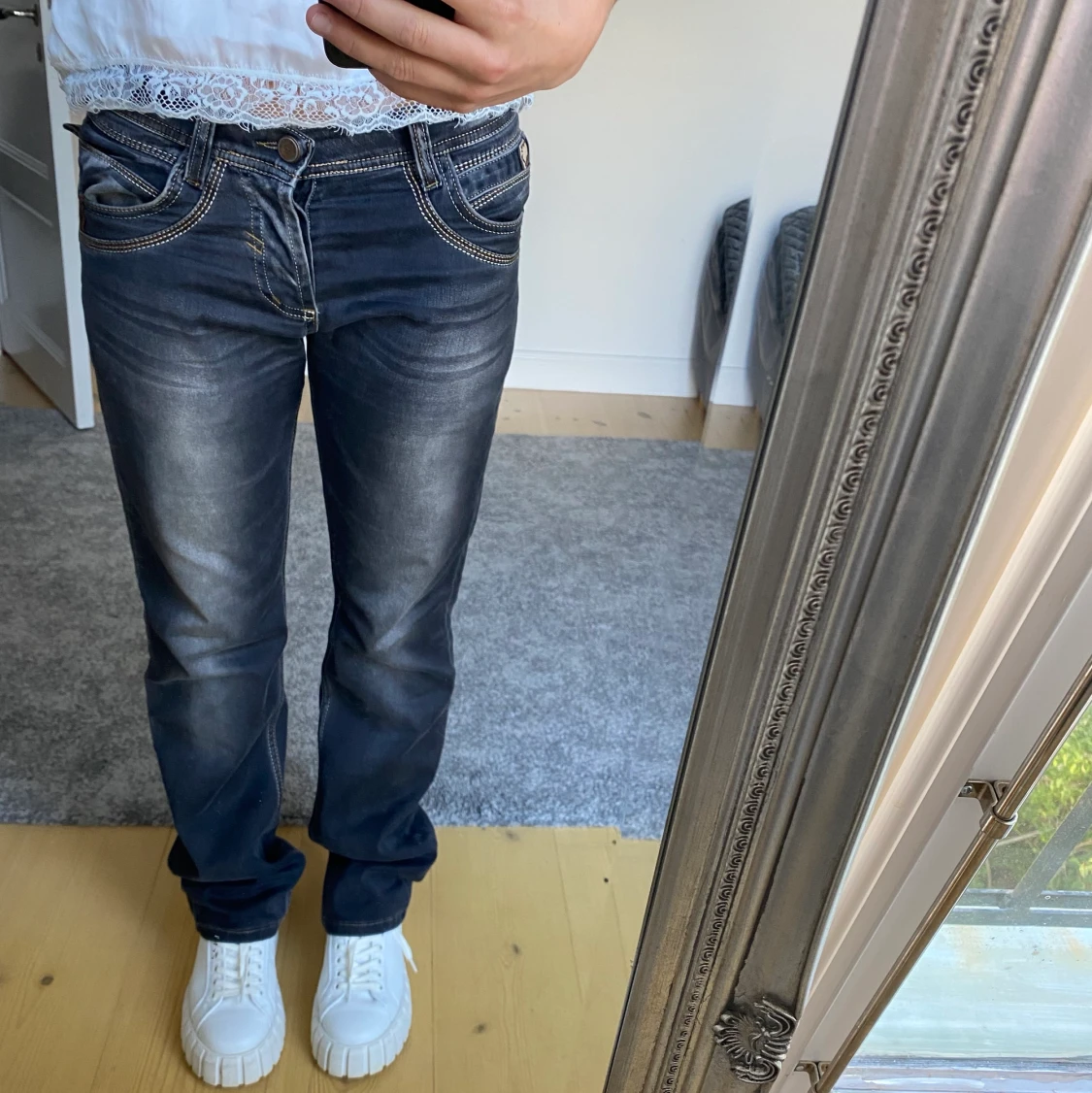 Säljer dessa unika och snygga jeansen med coola sömmar. De är köpte här på plick och är tyvärr lite för stora. Okänt märke och storlek. Jag själv brukar ha storlek 38 men de är som sagt lite stora i midjan på mig.