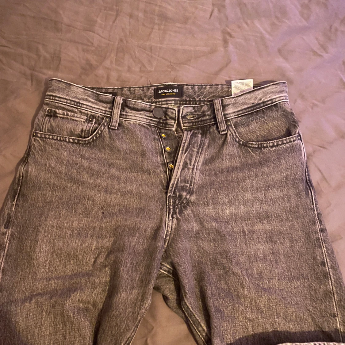 Säljer ett par grå jeans från Jack & Jones i modellen Relaxed/Chris. De har en avslappnad passform med knappar i gylfen och klassiska fem fickor. Perfekta för en casual look. priset ej hugget i sten!