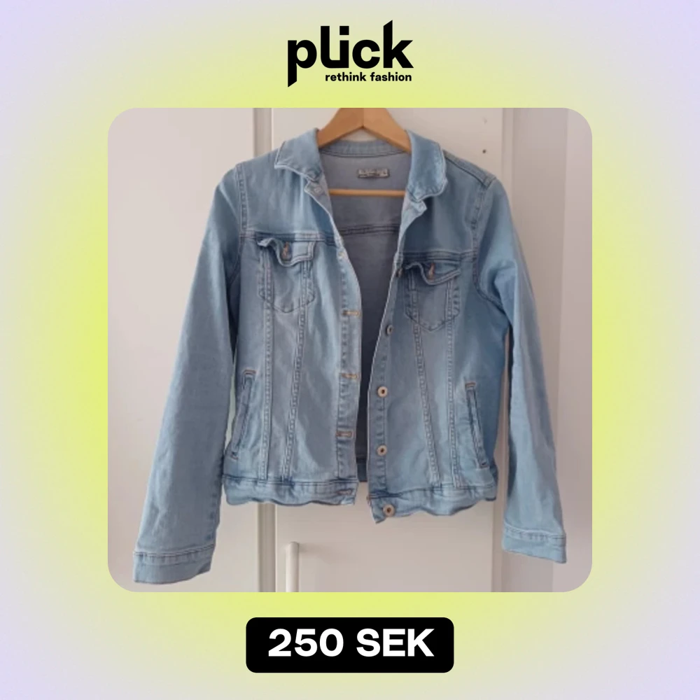 Snygg, Jeans jacka . Ganska kort men snygg ändå använd men ser ut som ny. Passar mer för M storlek