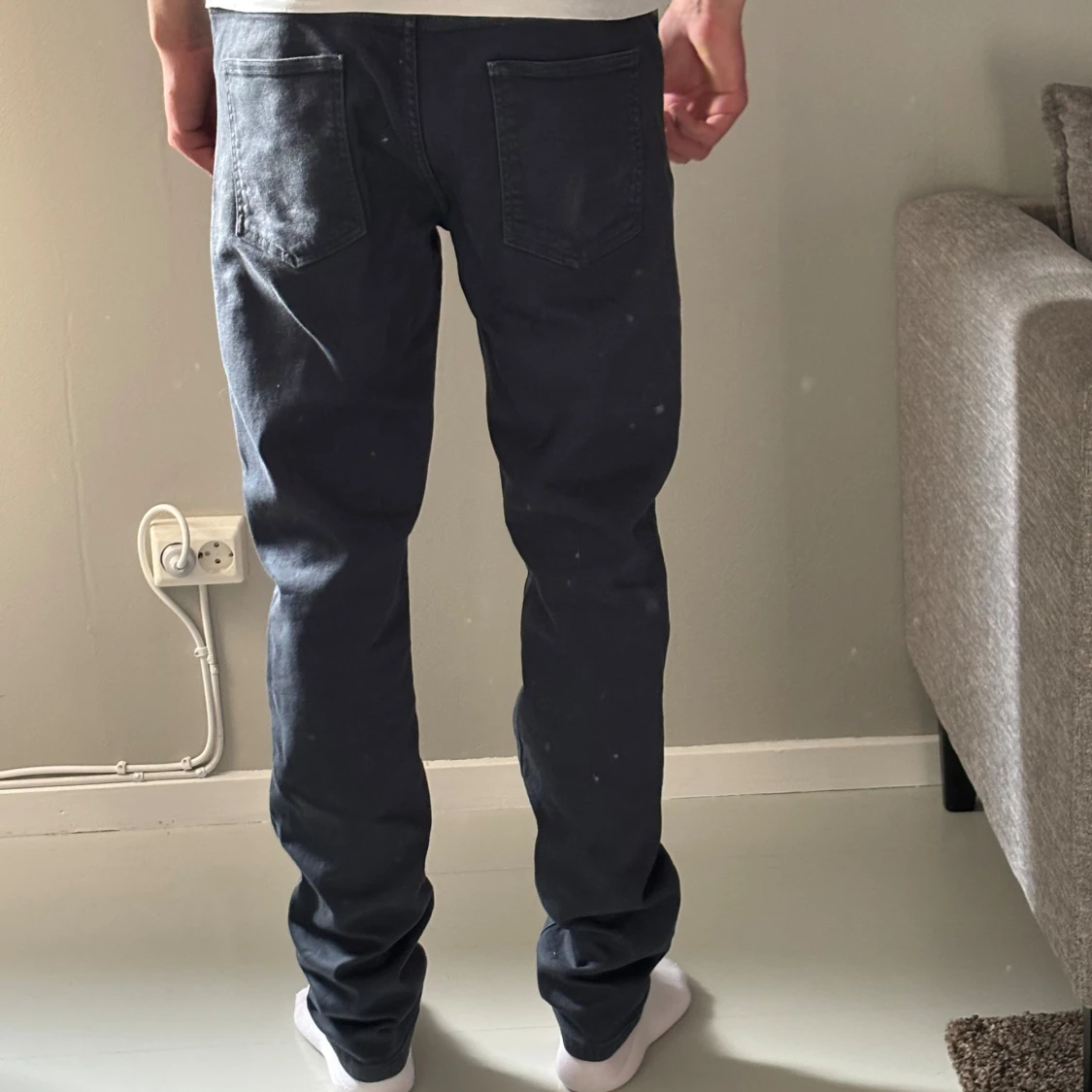 Snygga mörkblå jeans från J.Lindeberg med klassisk femficksdesign och diskret JL-logga på myntfickan. Jeansen har rak passform och är tillverkade i mjukt bomullstyg med en hint av stretch för extra komfort. Perfekta för en stilren och avslappnad look.
