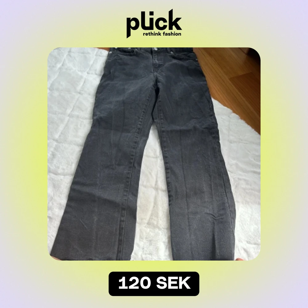 Crazy age jeans med trampstamp - Jag gjorde ett collage för att få plats med alla bilder, så jag ber om ursäkt om de är otydliga 😅Alla defekter syns på bilderna. Fläcken på byxorna är liten och svag. Defekter: fläck, lagningar och benöppningar. Byxorna sitter som på bilden trots lagningar och benöppning. För tillfället är jag tyvärr inte öppen för prisförhandlingar, men jag kommer nog att ändra mig om några veckor eller kanske 2-3 månader.   Innerben: 81 cm Midja: 41 cm Midjehöjd/rise: 17 cm Lår: 24 cm Benöppning: 27 cm